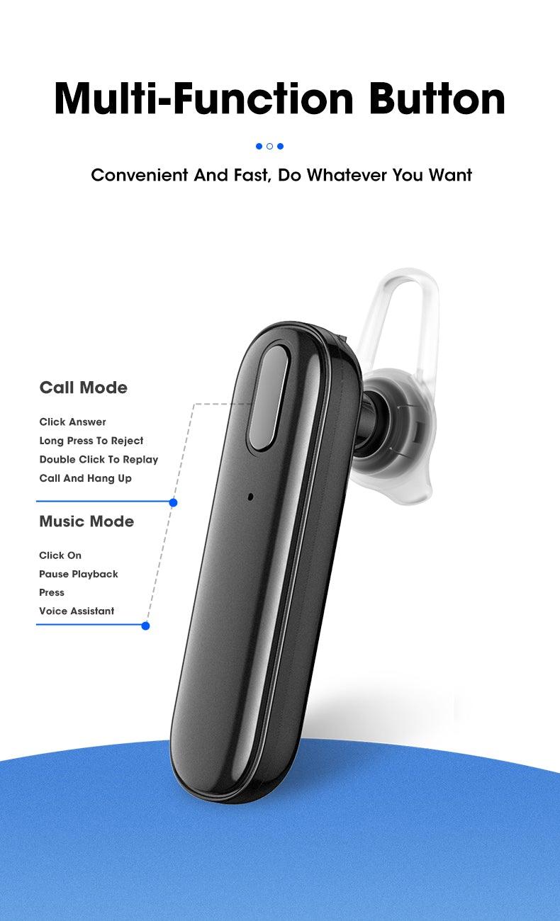 - BUTTON CONTROL: Comfortable Fit One button controls all feature, power on/off, next song, play/pause, hang up, answer, reject, pairing. is perfect fit any ear. Fully symetrical design, left and right ear both are fit, ergonomic design, so that you do not have a little pain even if used for five or six hours, very comfortable to wear.