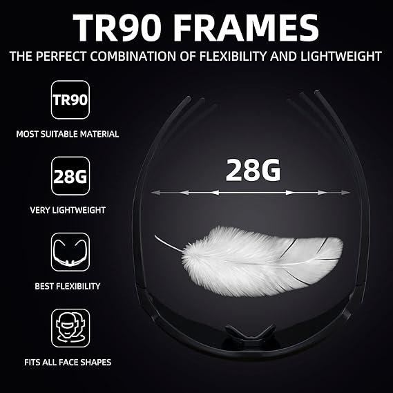 【Stylist and Lightweight】 Fashion and stylish design with rich color combinations of frames and lens. The sports sunglasses are suit for adult men women youth. These bike glasses are very lightweight just only 28g, you hardly notice them resting on your face.【Multifunctional Occasions】:It is an ideal choice for baseball biking running skiing volleyball tennis driving hiking triathlon fishing racing mountain tour softball mountain climbing trekking playing golf hiking boating hunting and other outdoor sports.