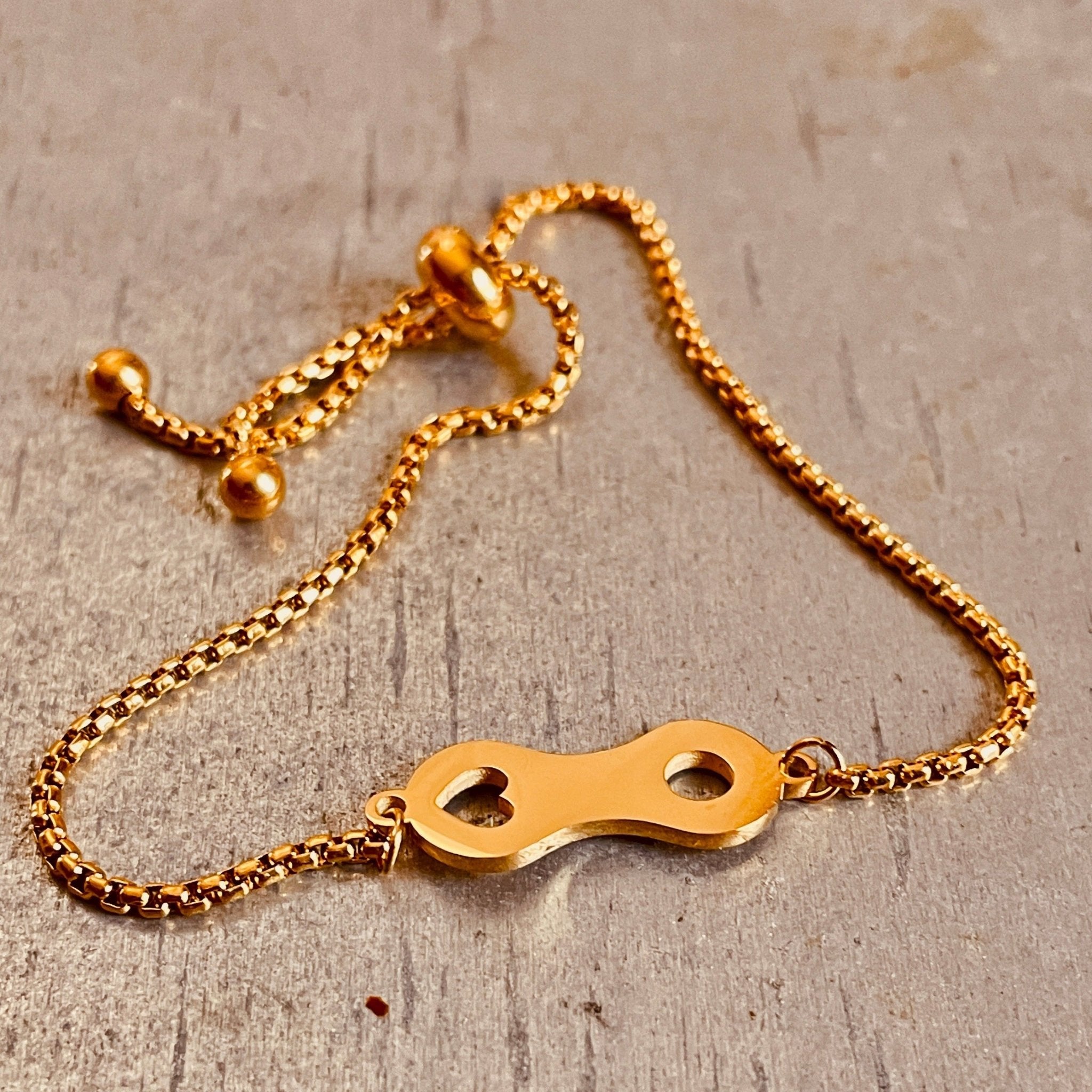 Saying I love cycling has never been so easy and elegant as with this 14k gold plated unique bracelet.
