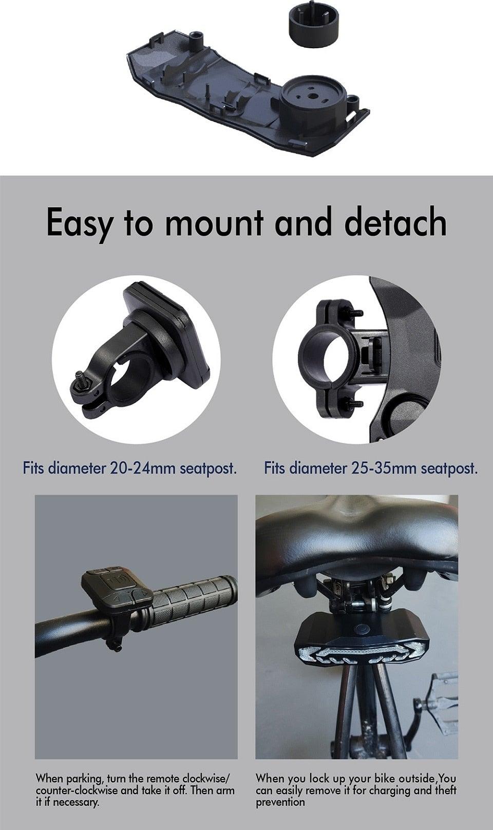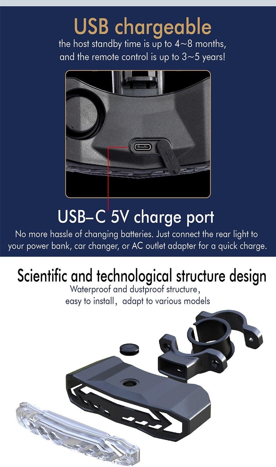 - WATERPROOF BIKE ALARM: Anti-theft bicycle alarm can make a loud sound to draw people's attention. 110dB Loud can effectively scare thieves away, Waterproof bike rear light and remote control ensure that it can be used in all kinds of bad weather.