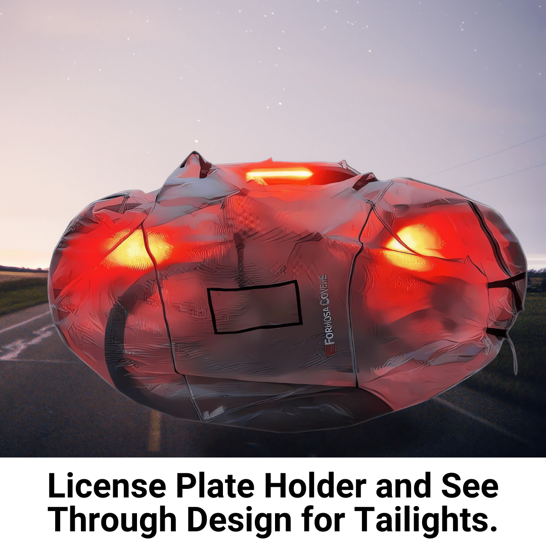 Completely encloses the bikes and seals at the hitch so you can rest easy knowing rain, road debris, and inclement weather will not wear on your bikes. Newest version, made with our signature and powerful translucent material that encloses the entire bike. Perfect for road trips for the back of your RV, Van, Truck, SUV, Trailer, Vehicle. Fits standard and extended wheel base bikes. Don't hit the road without protecting your equipment!