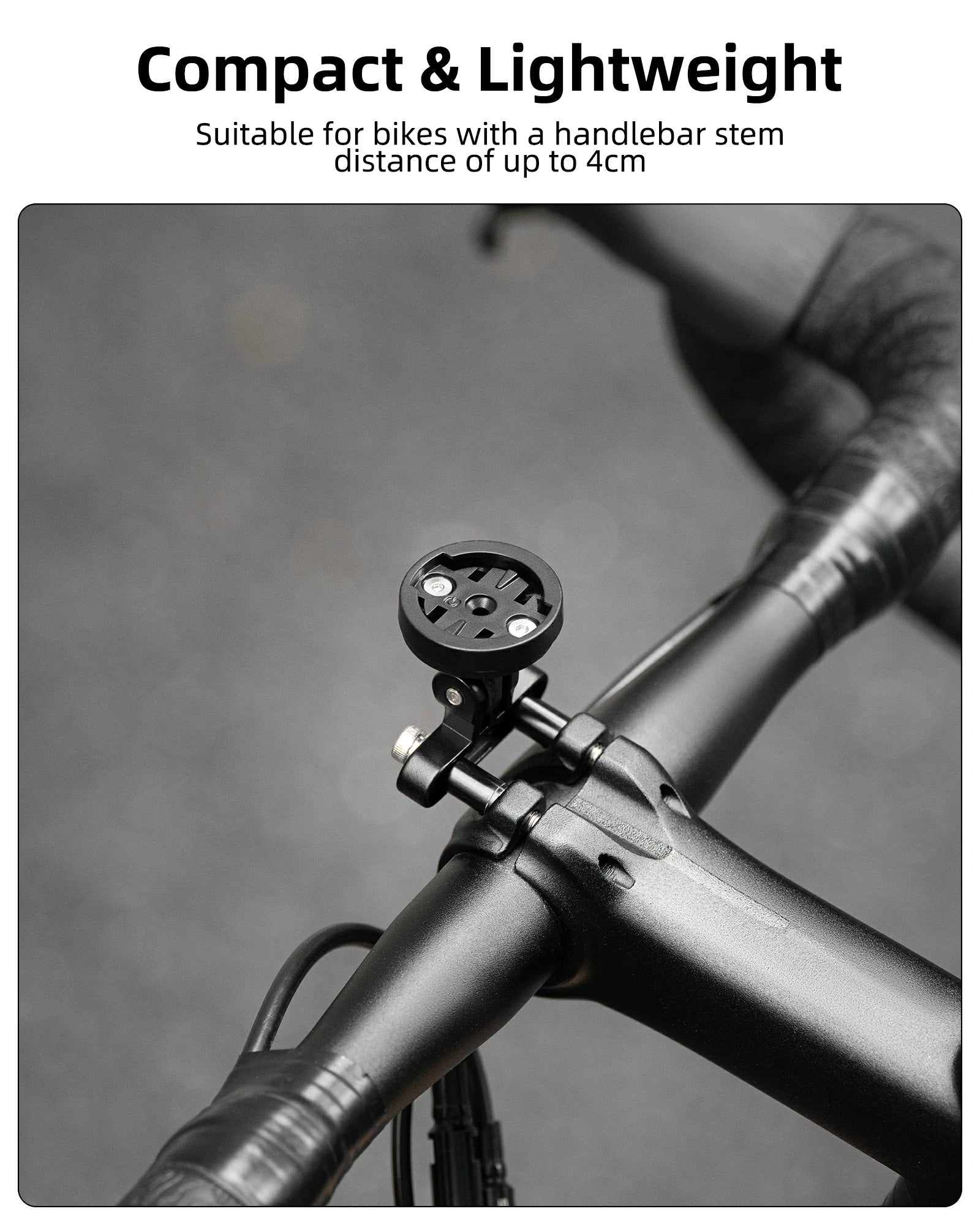 • Compact and Lightweight:The bike computer mount is lightweight and compact, does not take up much space on the handlebars, and is suitable for bikes with a handlebar stem distance of up to 4 centimeters.