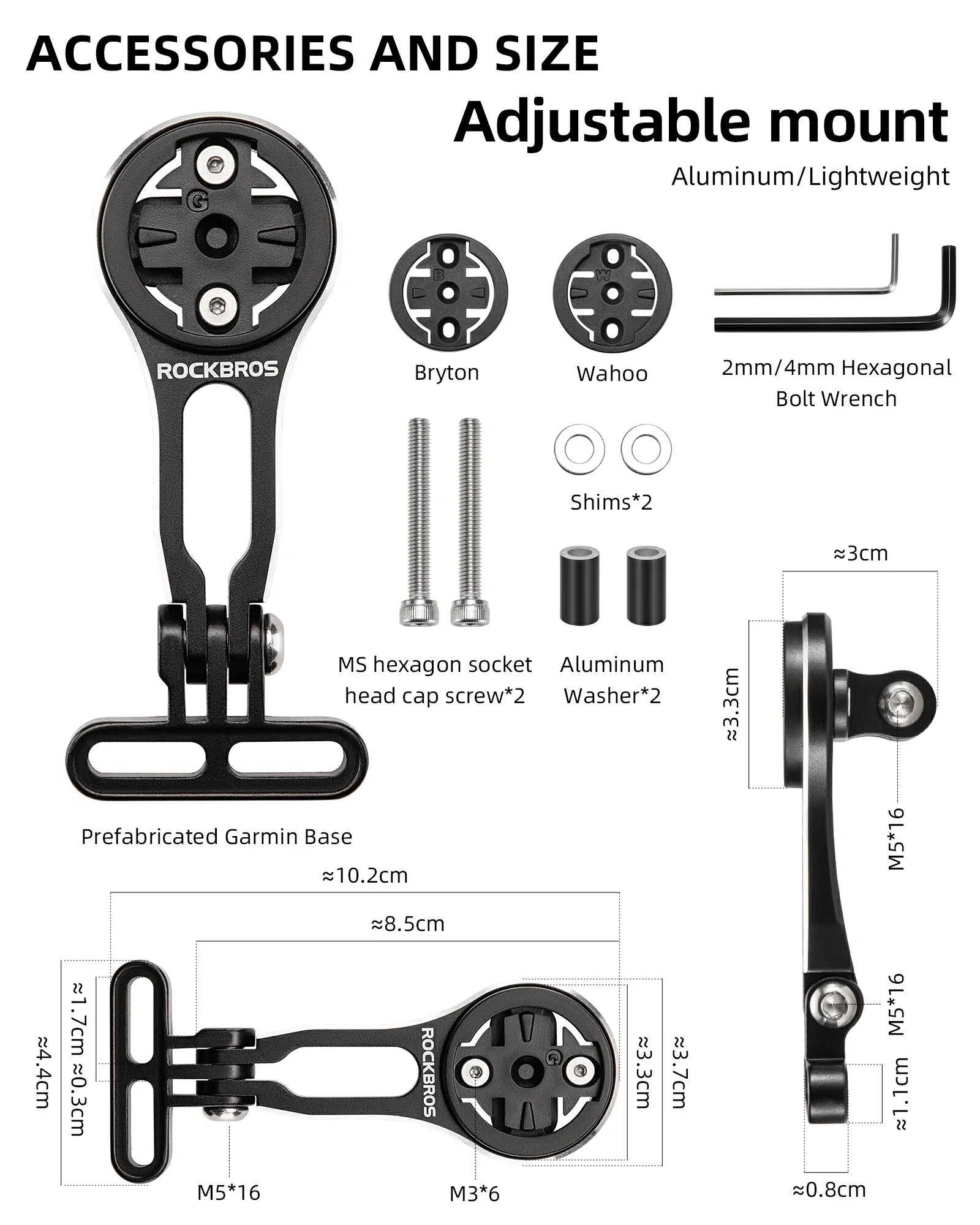 • Equipped with Different Bases:ROCKBROS bike computer mount compatible with Garmin, Bryton . The package contains different edges for different bike computer.Notice:Wahoo cannot be used together with Go Pro