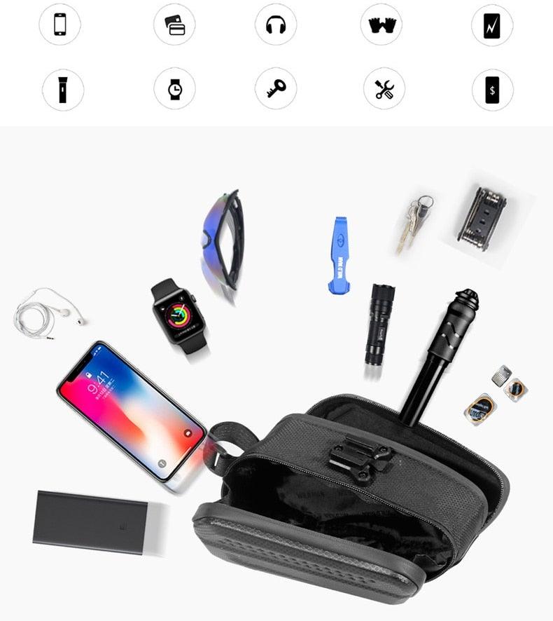 - MODERN DESIGN: You can store cash, watches, keys, phones, small bicycle pump, cable lock, maintenance tools separately and get them easily.