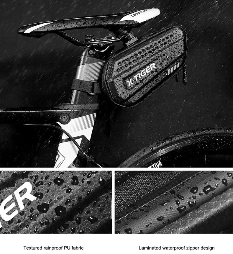 - WATER RESISTANT: With special water resistant layer coated, along with waterproof EVA edge and waterproof zipper, this bicycle saddle bag is water resistant, perfectly protects your items against raindrops and moist.