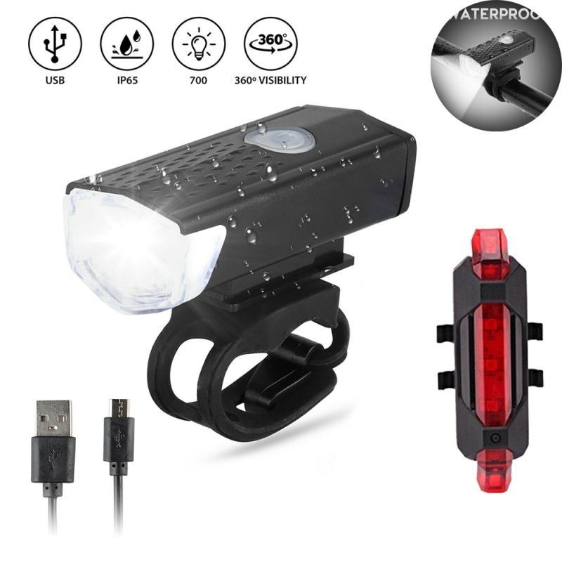 Waterproof USB LED Rechargeable Set Bicycle Lamp Mountain Cycle Front Back Headlight Lamp Flashlight Bike Powerful Bicycle Front Headlight And Back Taillight Fast Disassembly Bicycle LED Light For Road Mountain Cycling