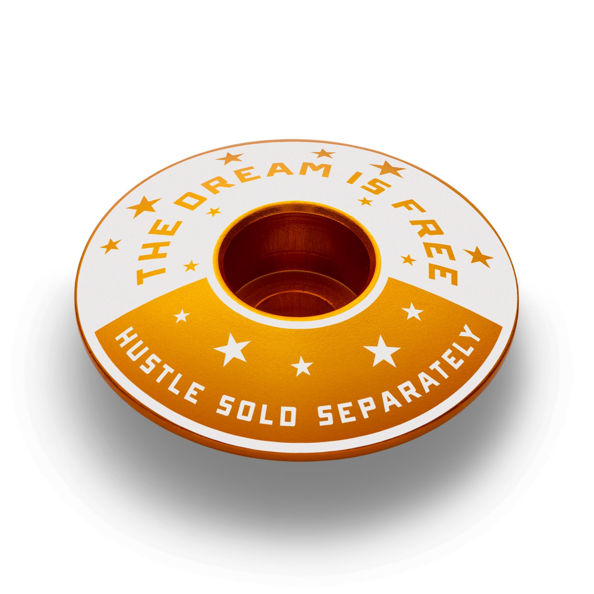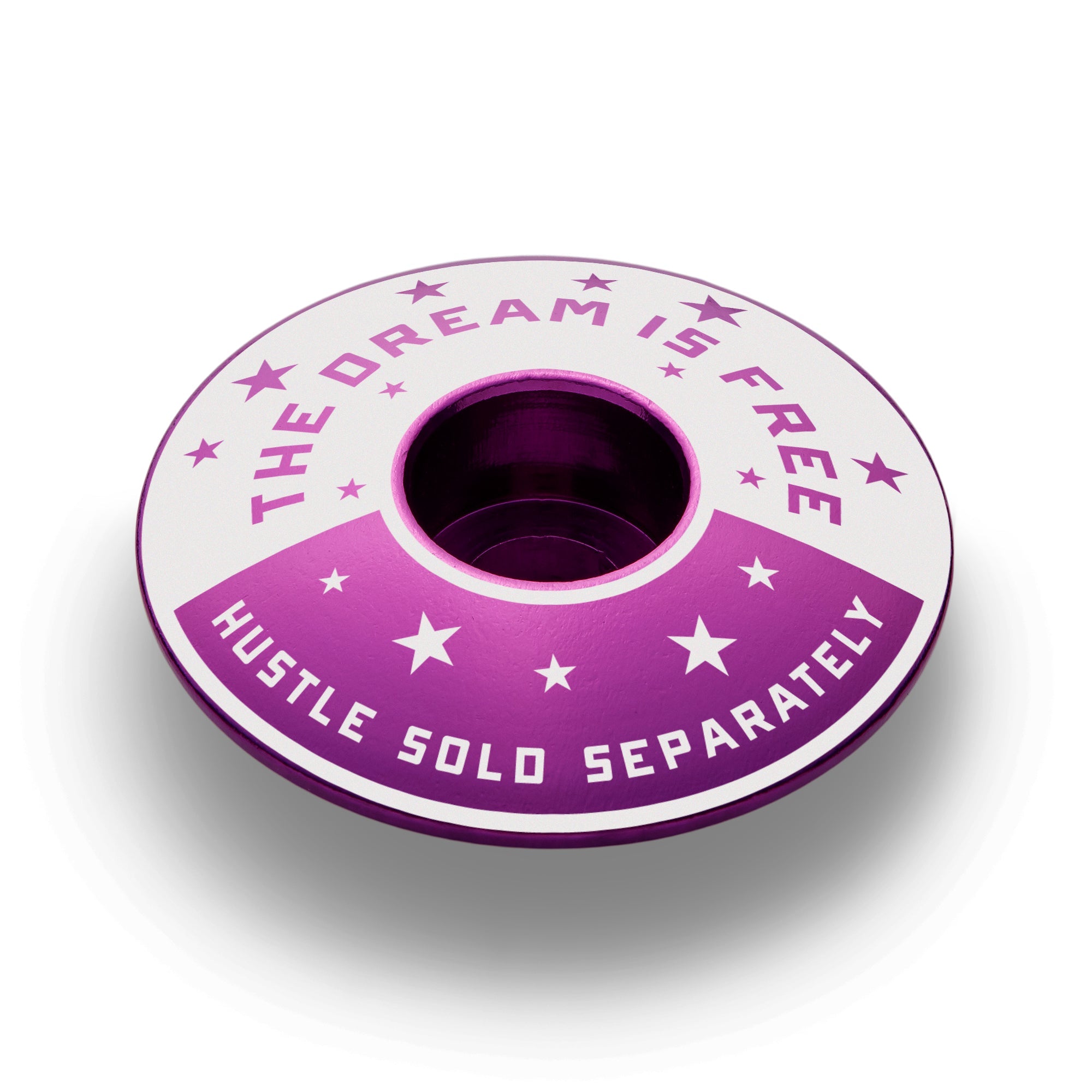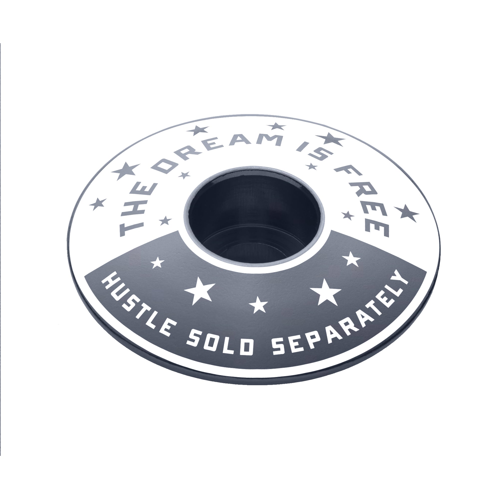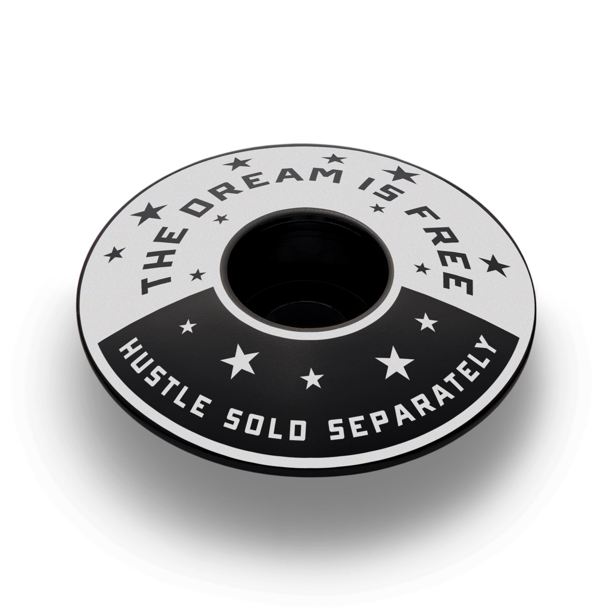 Oh, you think this deal is free? Wrong! Dreams have always been free. By all means, dream on. Do you want to get somewhere? The Hustle is sold separately, and you'll pay dearly. Fortunately for you, this bike headset cap won't cost you as much as the hustle. Winners hustle. You hustle. Get some!