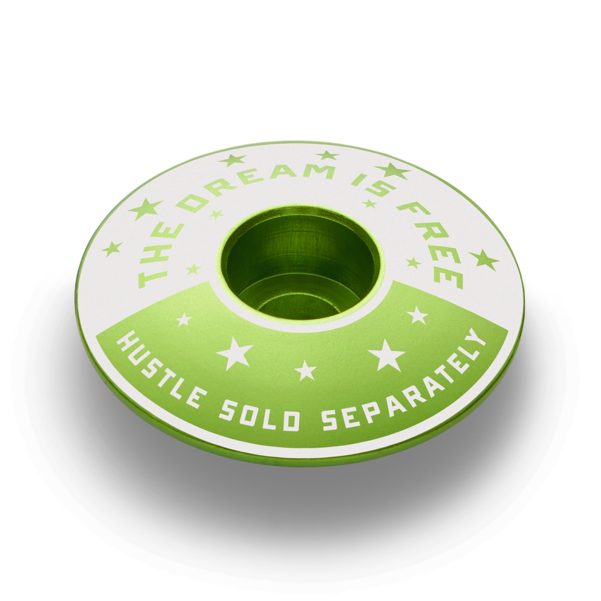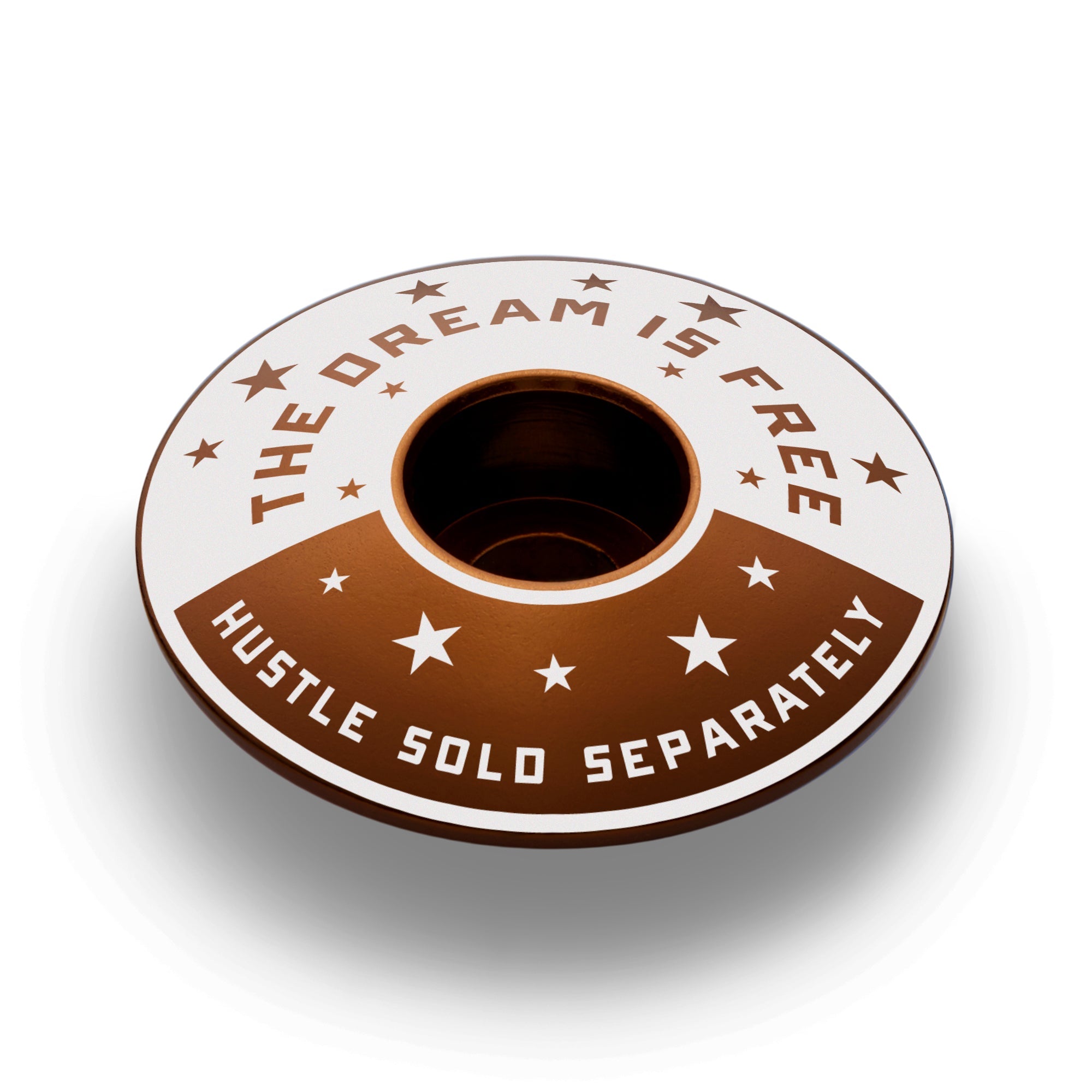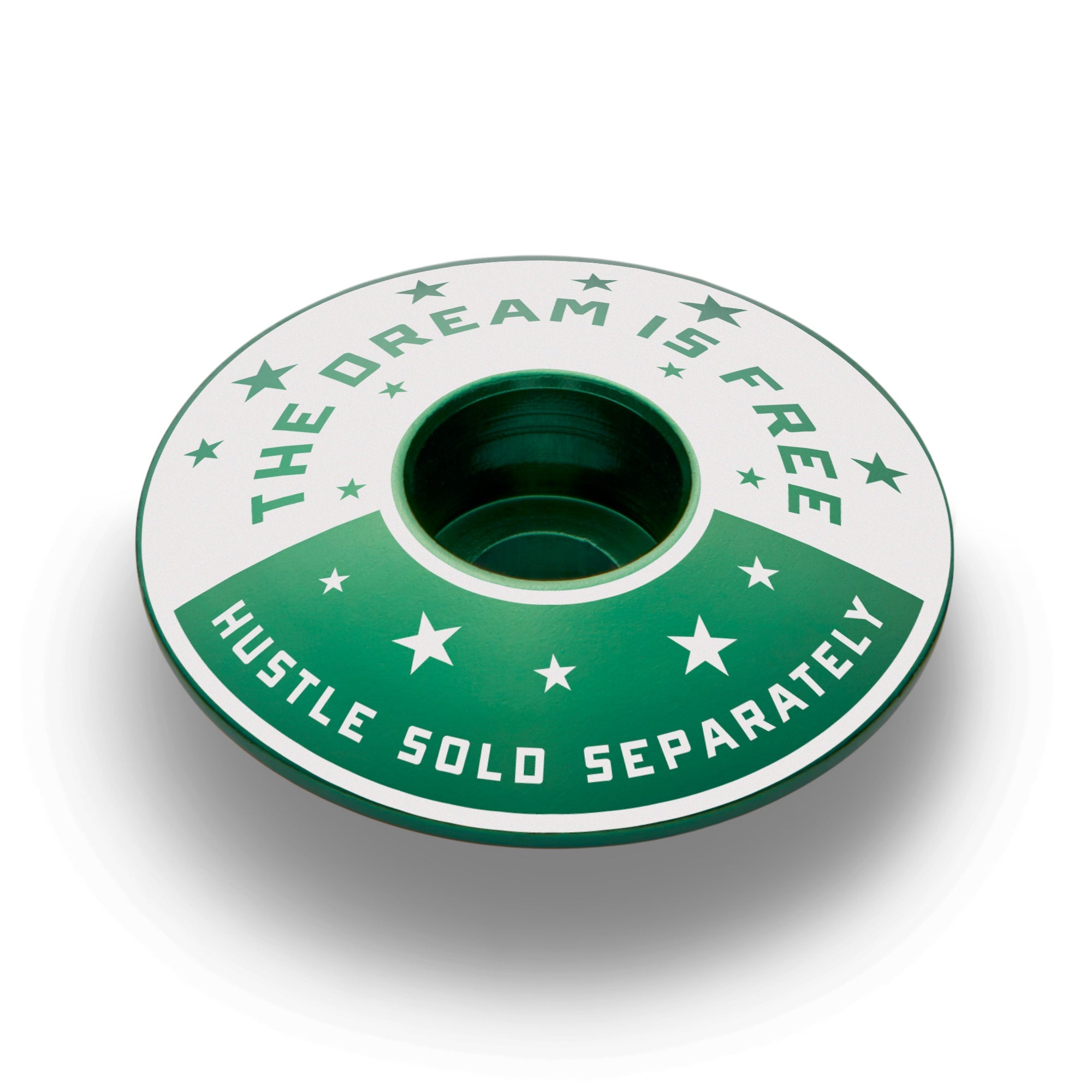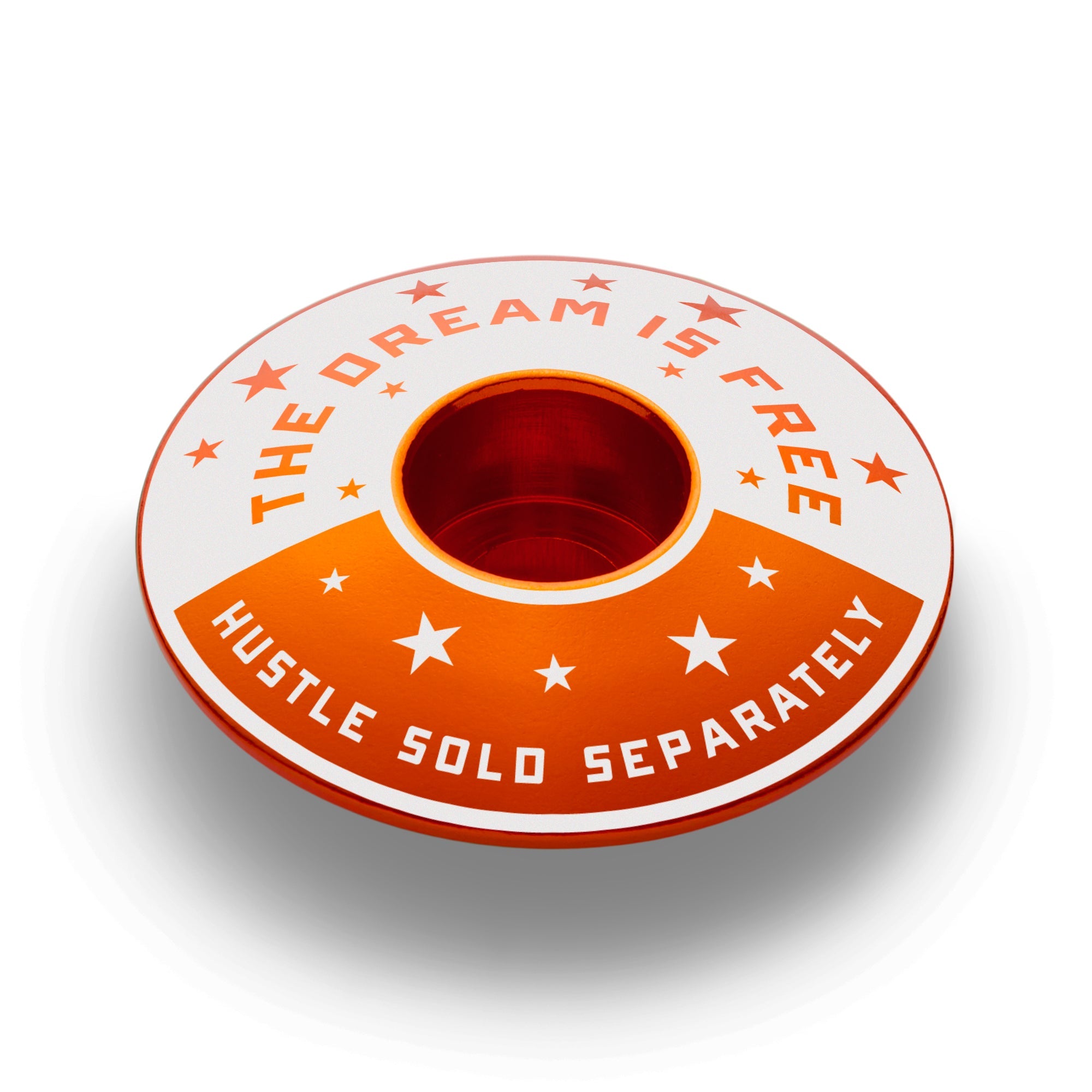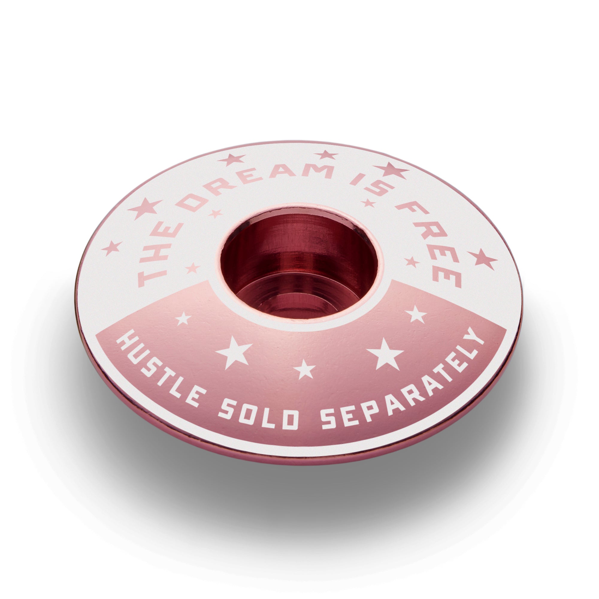 Oh, you think this deal is free? Wrong! Dreams have always been free. By all means, dream on. Do you want to get somewhere? The Hustle is sold separately, and you'll pay dearly. Fortunately for you, this bike headset cap won't cost you as much as the hustle. Winners hustle. You hustle. Get some!