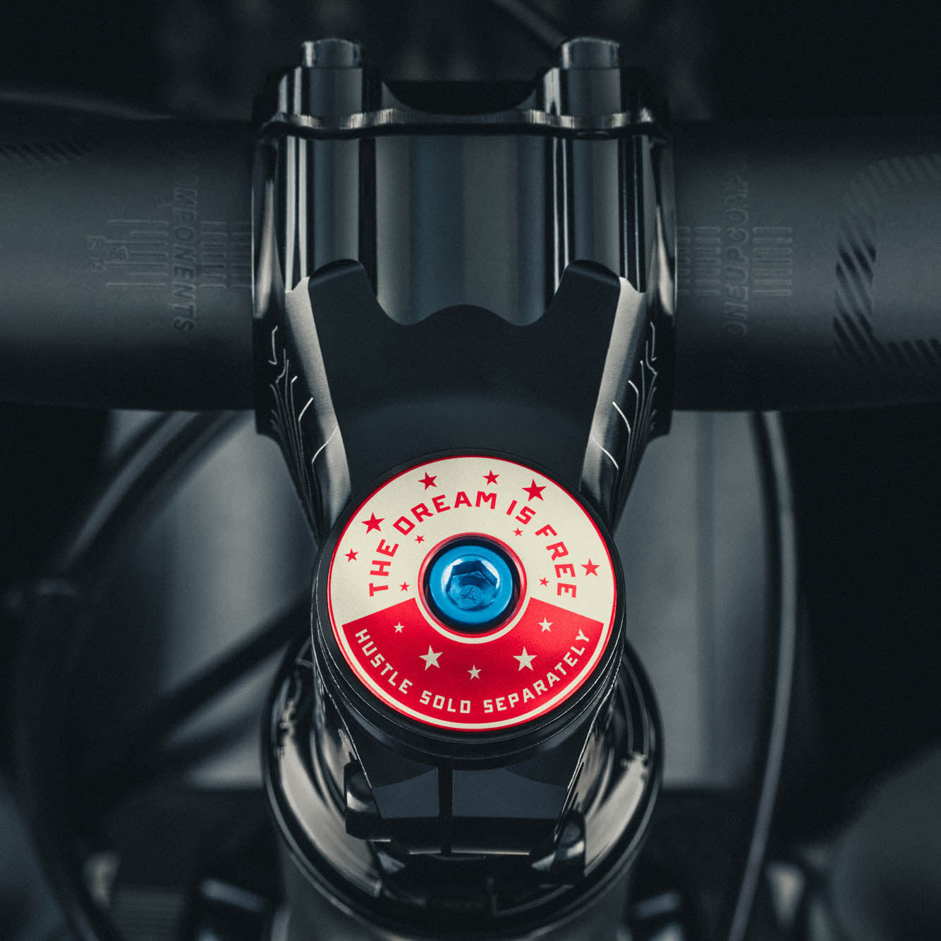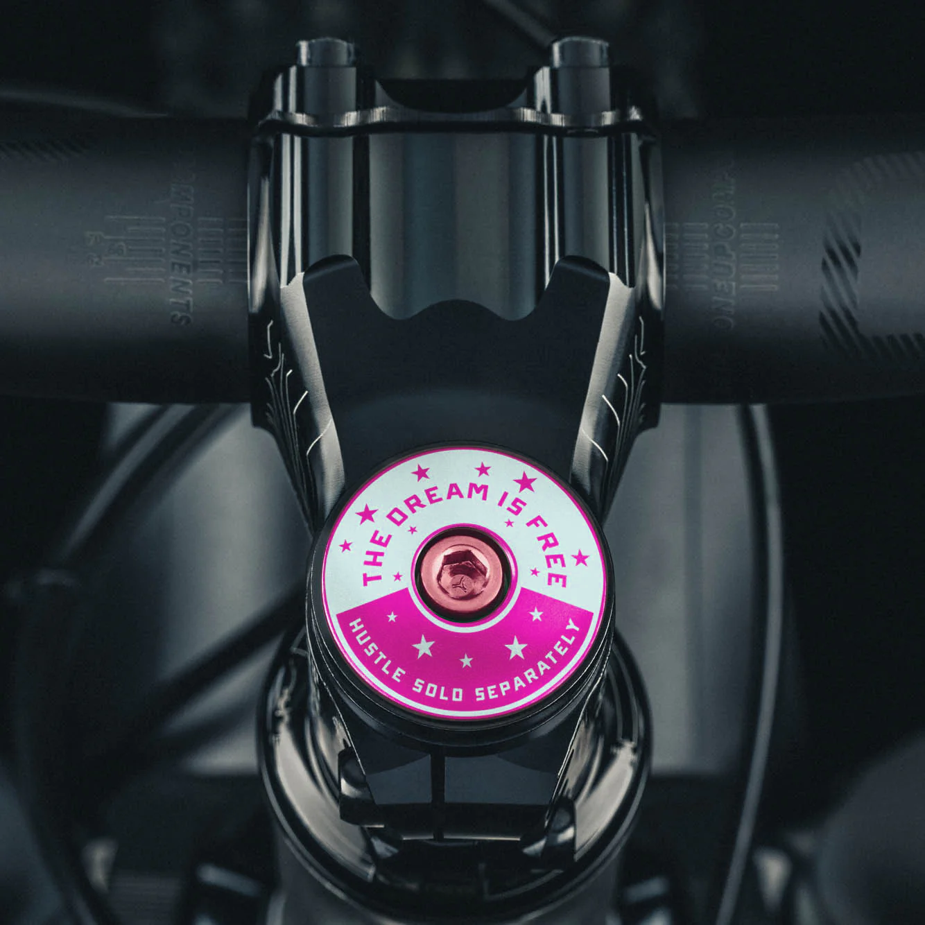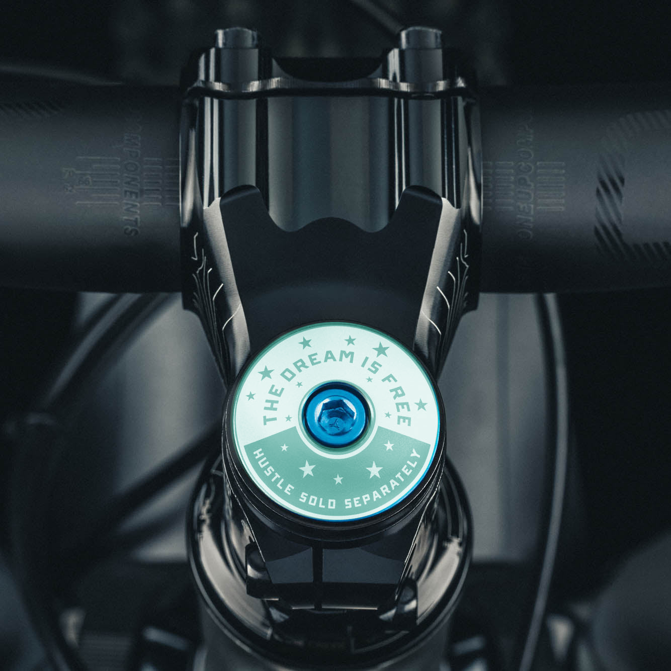 The Dream is Free. Hustle Sold Separately bicycle stem caps.