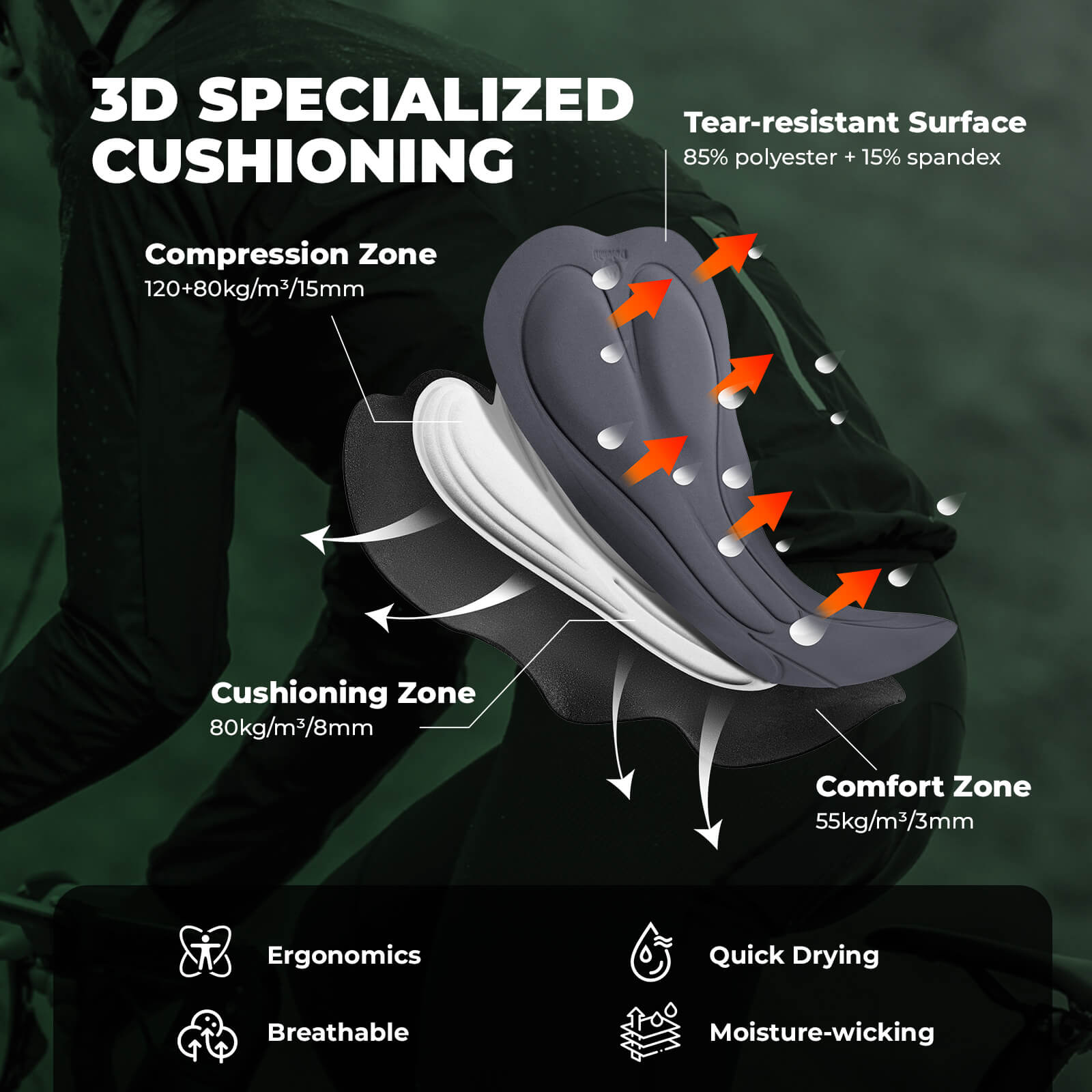 Engineered for long-distance comfort, the premium DOLOMITI chamois pad effectively disperses pressure and enhances moisture wicking. Perfect for endurance rides, it offers support where you need it most.