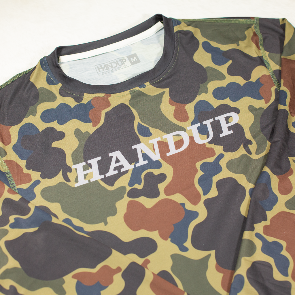 The marsh camo print nods to those misty mornings when the coffee’s hot, the dirt’s damp, and the stoke’s high.