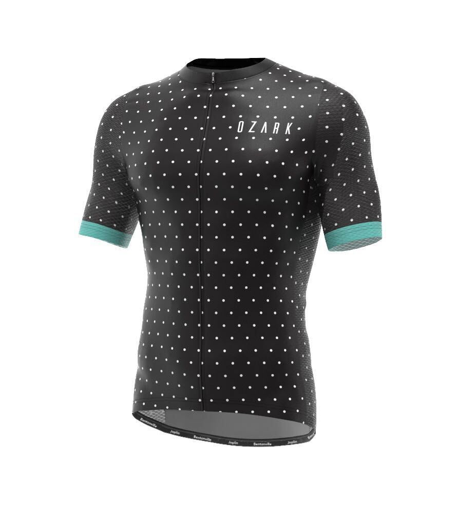 Ozark Cycling Men’s Jersey – Black Polka Dot Performance Fit with Full-Length Ventilation and Ample Storage