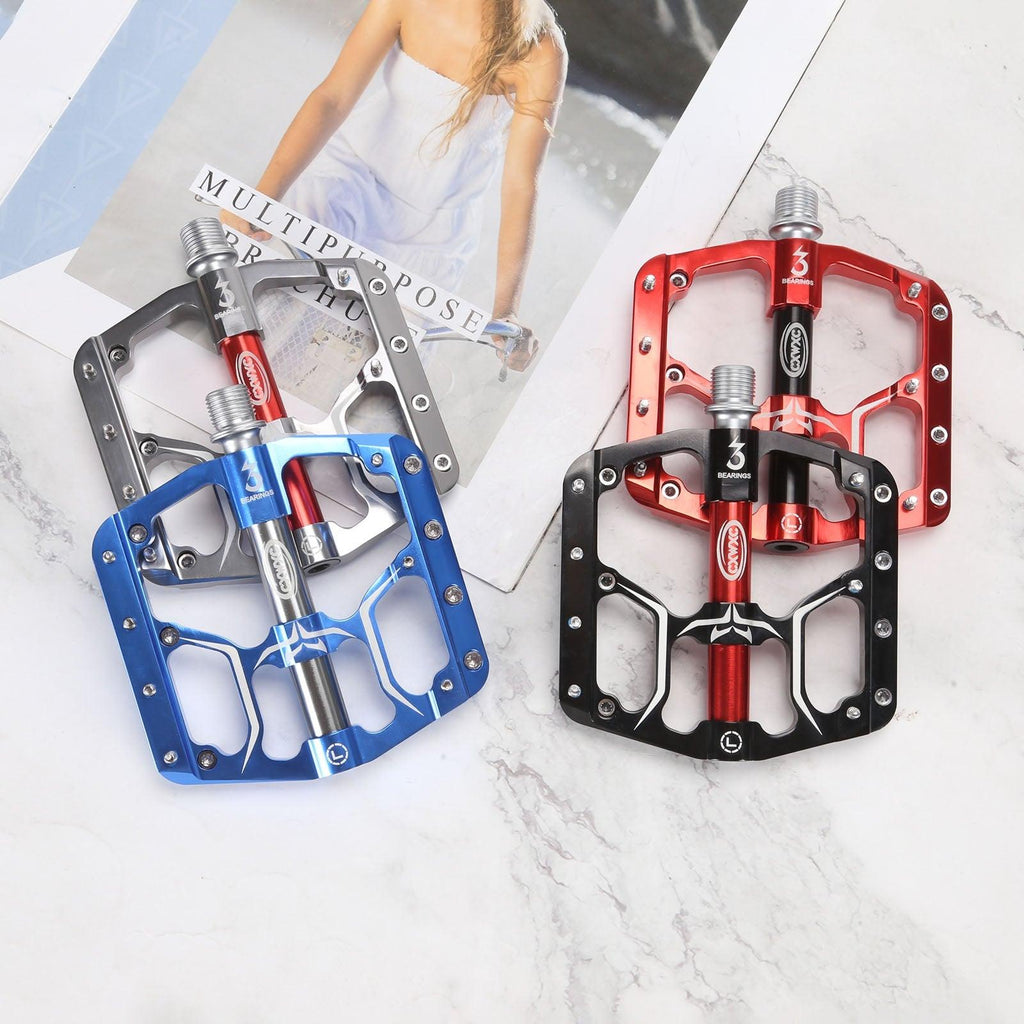 • HIGHLY DURABLE: Beautiful outward design and good deformation resisting property, with 3 bearing, our bike pedal is strong, durable. Bicycle pedal.
