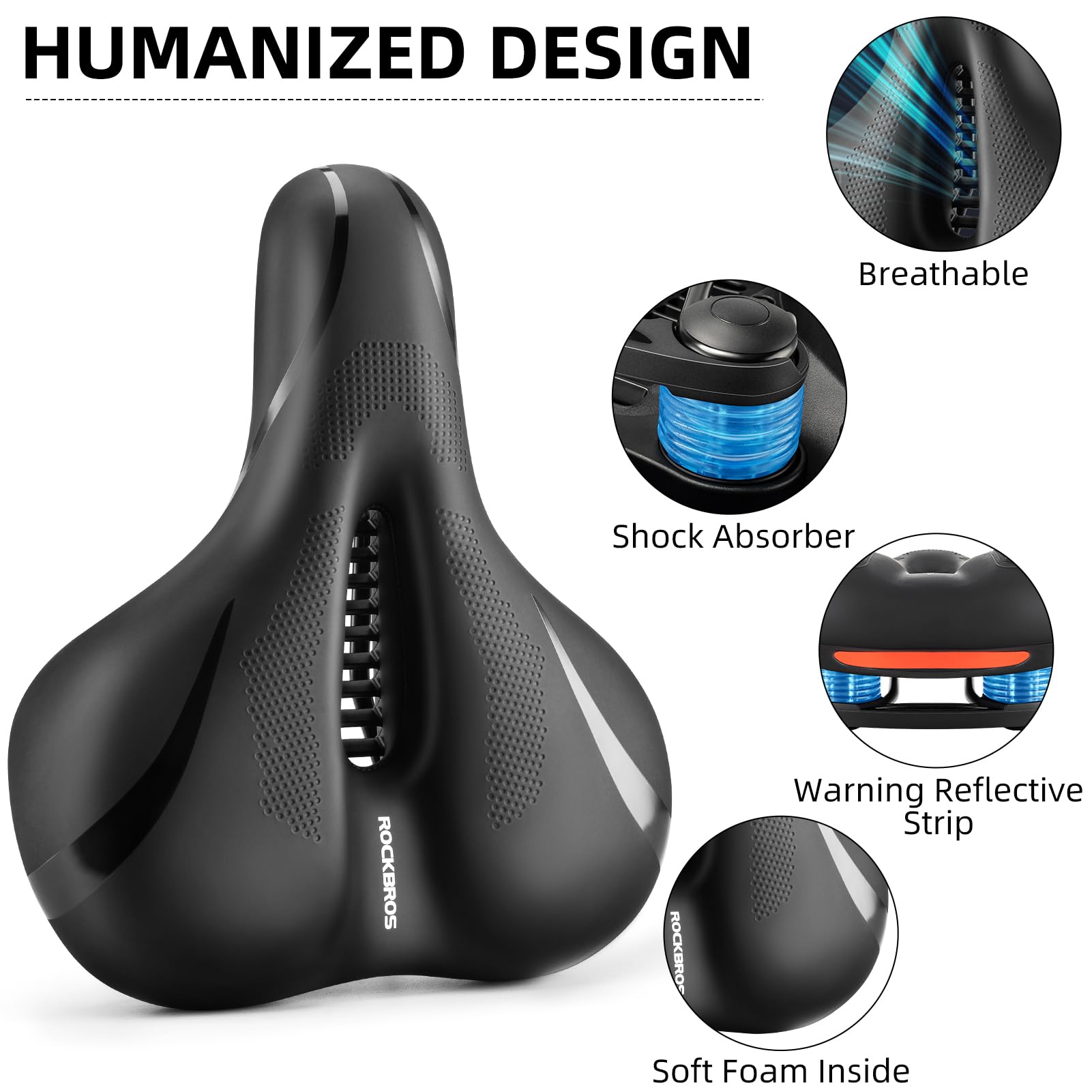 - Comfortable Bike Seat: ROCKBROS wide bike seat is 8.66 inches wide, which will distribute greatly the pressure on the hips in cycling, keep you comfortable and healthy on rides. The bike seat is padded by thicken high-density memory foam and extra gel, enhances super softness and support, make your workouts last longer.