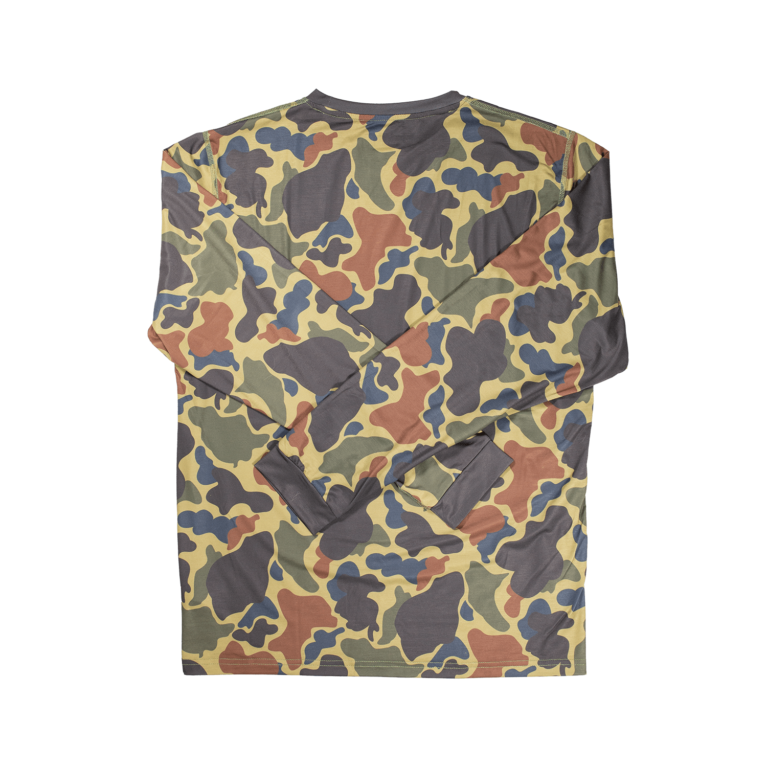 The marsh camo print nods to those misty mornings when the coffee’s hot, the dirt’s damp, and the stoke’s high.