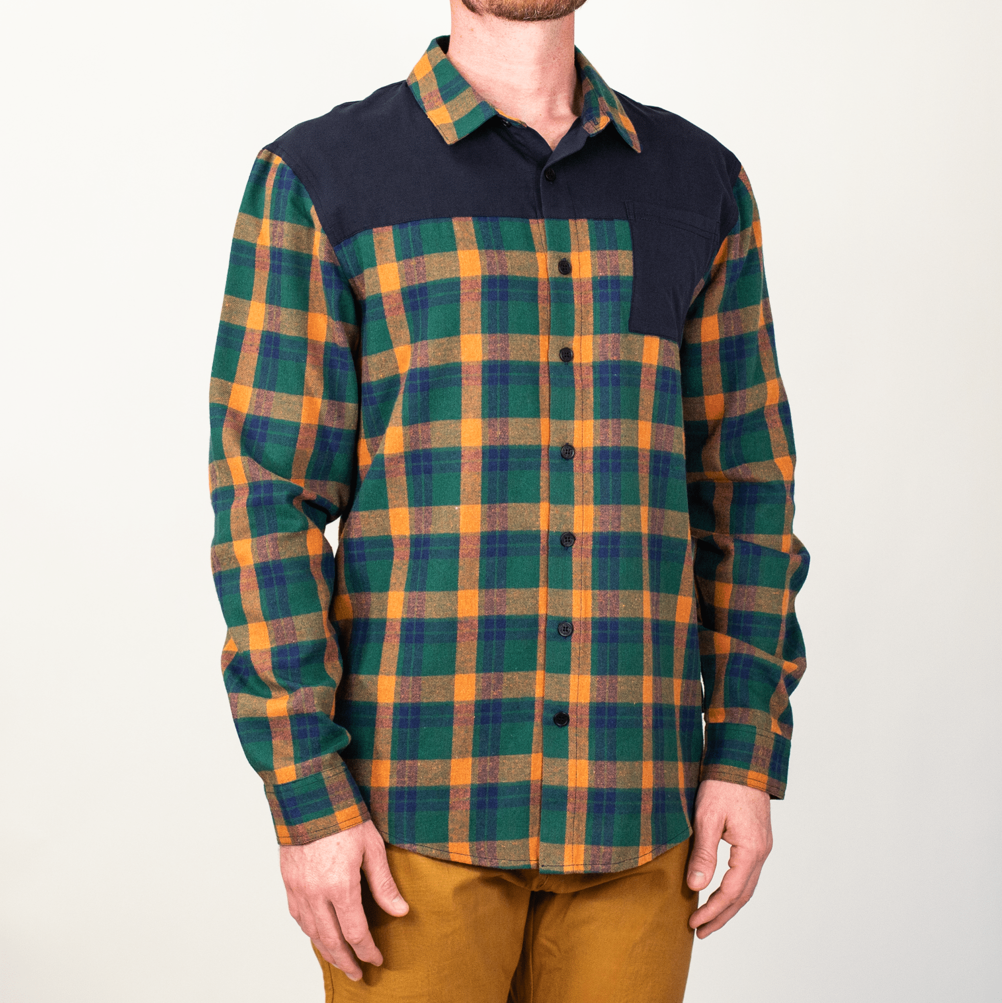 The FlexTop™ Flannel dons its namesake with the flexible and solid, fabric panel across the top of the shoulders. Our unique design combines the mobility of your favorite shirt with the warmth of a soft sweater into a timeless Flannel Button Up that can be worn on the bike, out on the town, or around the camp fire.