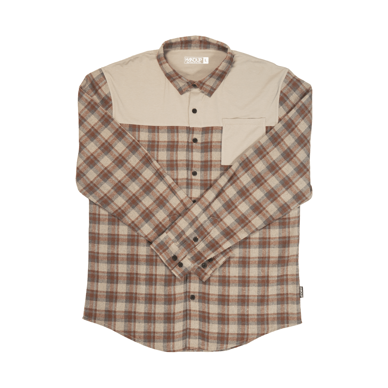 The FlexTop™ Flannel dons its namesake with the flexible and solid, fabric panel across the top of the shoulders. Our unique design combines the mobility of your favorite shirt with the warmth of a soft sweater into a timeless Flannel Button Up that can be worn on the bike, out on the town, or around the camp fire.
