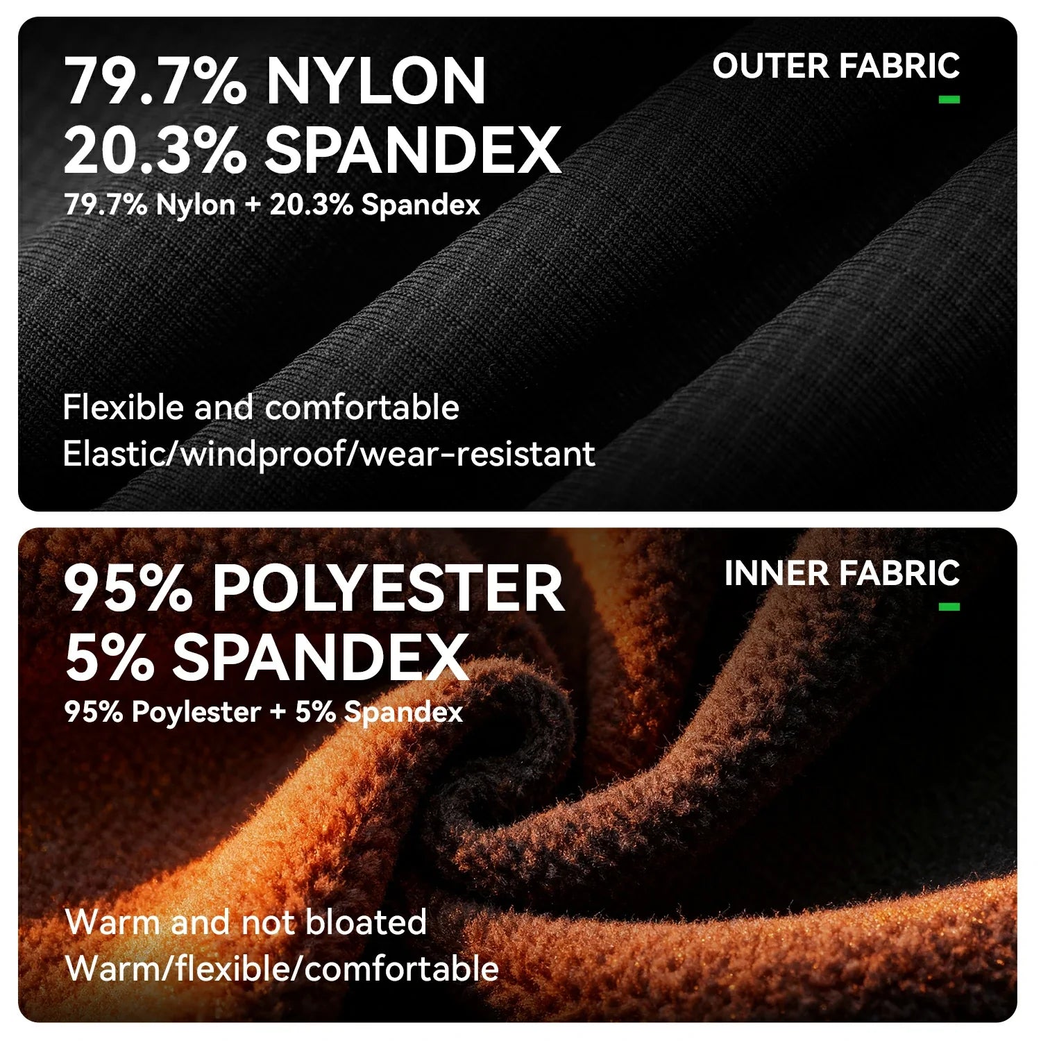 | Outer Fabric | 79.7% Nylon + 20.3% Spandex |