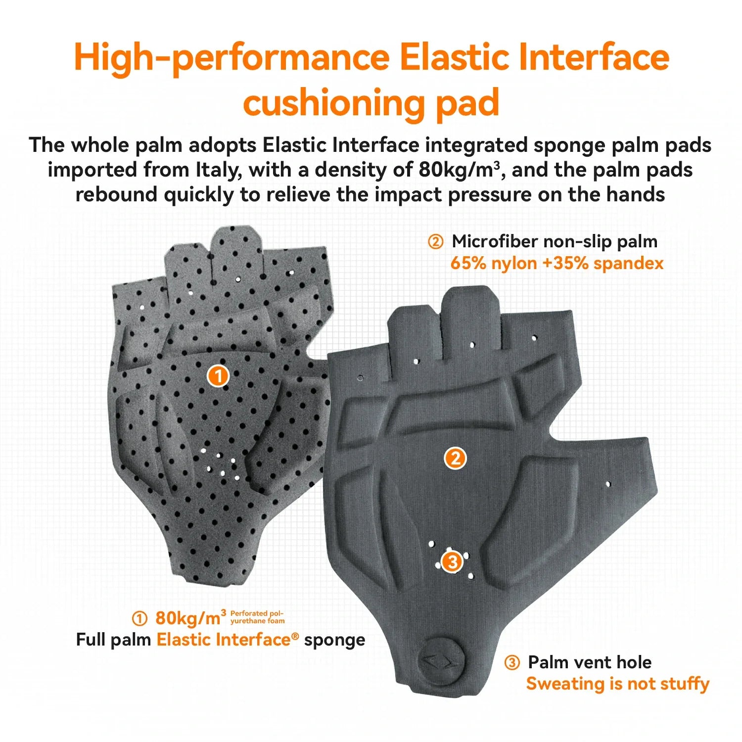 • Palm Pad: 80kg/m³ Elastic Interface® perforated sponge