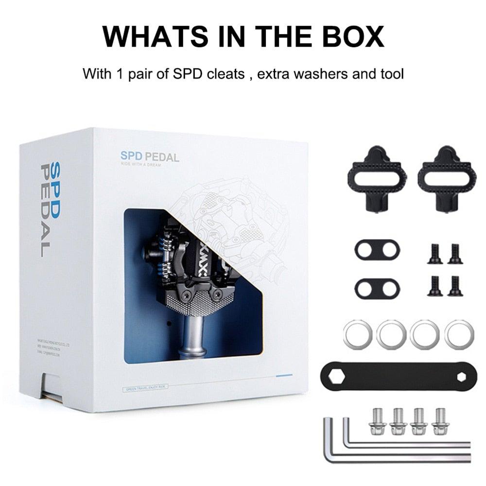 - PERFECT ADJUSTABLE CLIP: Made of die-cast aluminum alloy, design with an easy step-in cleat system, the cleats tension could be adjusted on both side of the pedal. Professional level pedals ensure perfect clip in feelings.