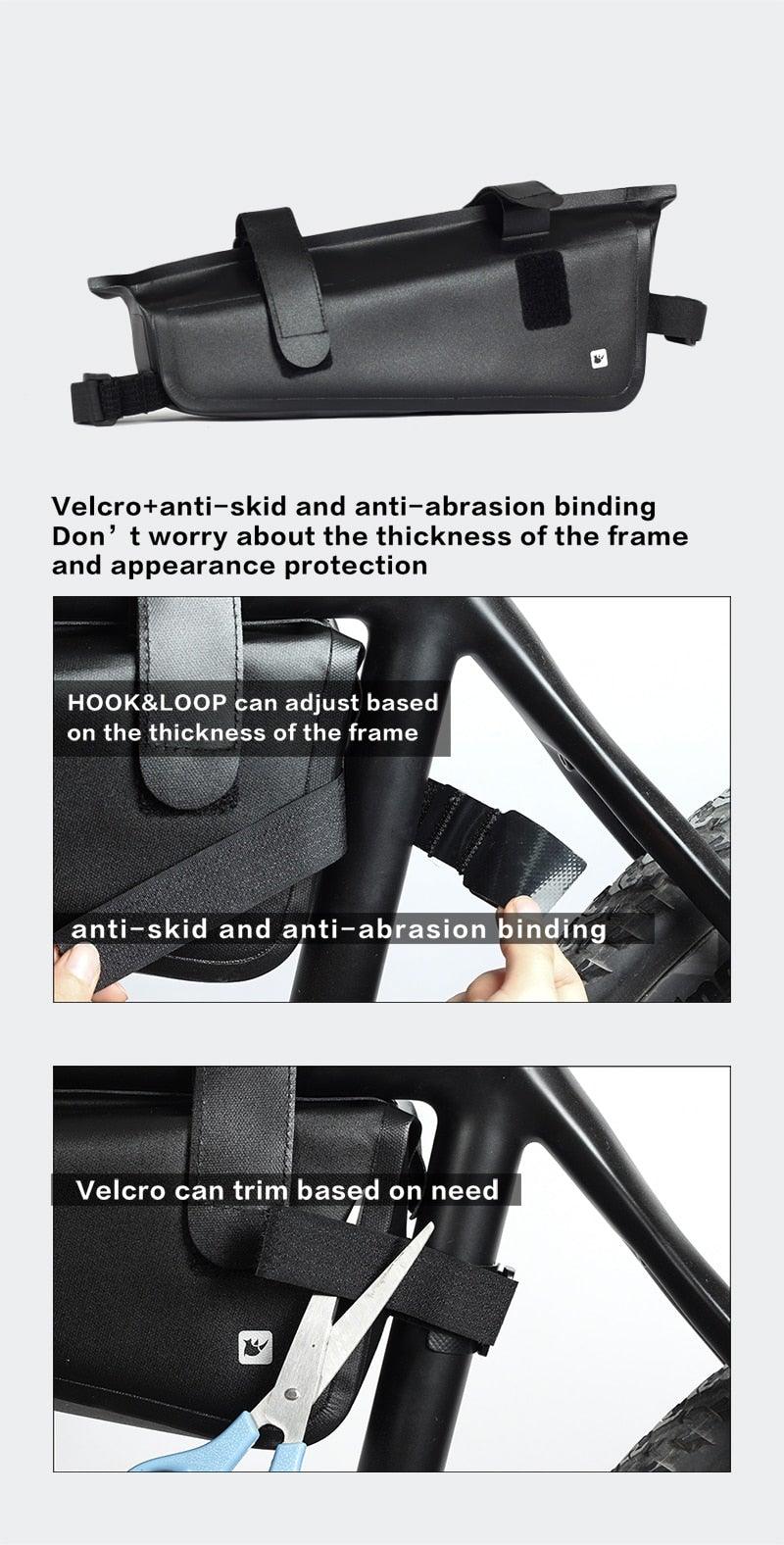 • EASY TO ASSEMBLE AND DESSEMBLE: The bag is strap-designed. All you need is to wrap the three belts on your bike, and then use the verclo to fasten it