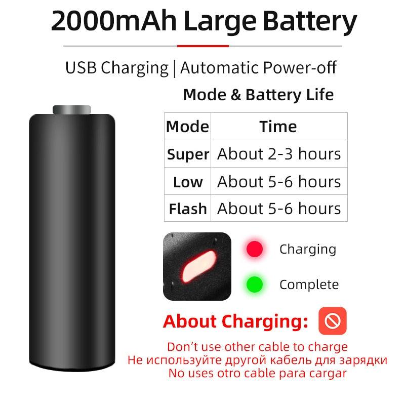 Bike Front Light Rainproof USB Rechargeable Bicycle Light Cycling Headlight LED Flashlight Bike USB Rechargeable Bicycle Light Bicycle Front Headlight LED Bike Headlight Lamp 2000mAh