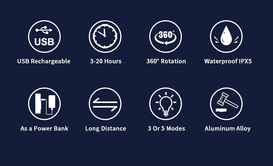 • MULTIFUNCTION:   It’s more than a light for bike. Suitable for cycling, fishing, running, dog walking ,hiking, camping, changing a tire, night time family, kids activities or other activities. You can also keep it inside your car,basement,attic,and emergency kit as an emergency flashlight. The lamp can be used as a power bank, If your phone lack of power during the riding, you can use it to charge your phone.