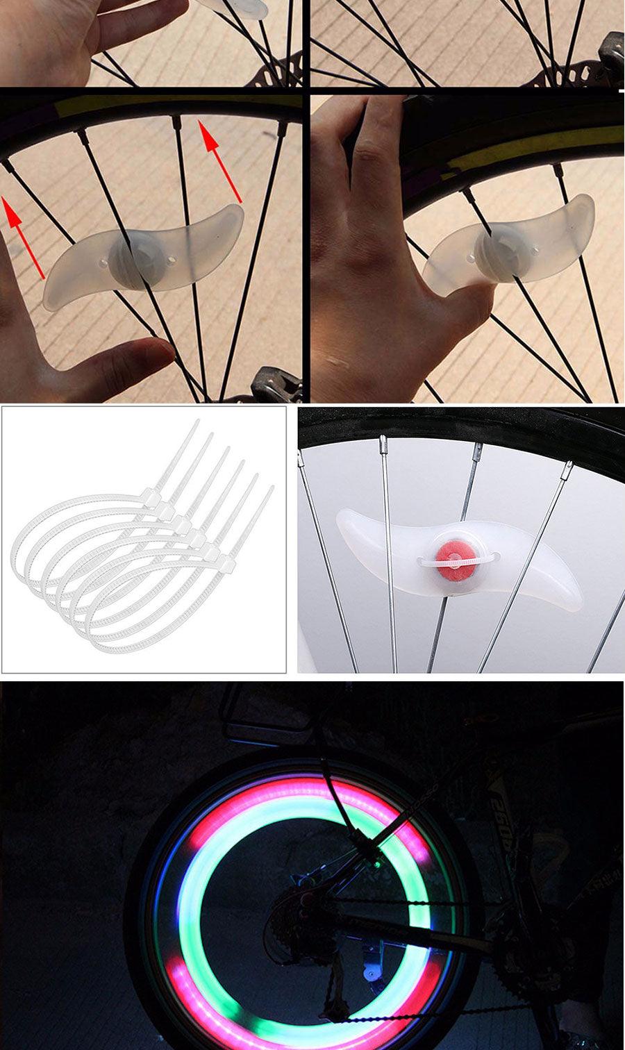 - GREAT SAFETY AND COOL RIDING: Bright and attractive wheel lights show glorious flash sight in night, your wheel will be more noticeable, visible and safer. No riding speed requirement! Colorful spoke lights bring you tons of compliments when riding. Lights fix on the wheel tightly, no worry about falling.