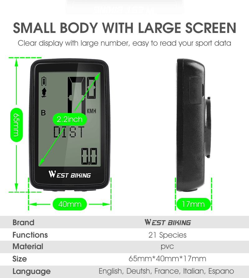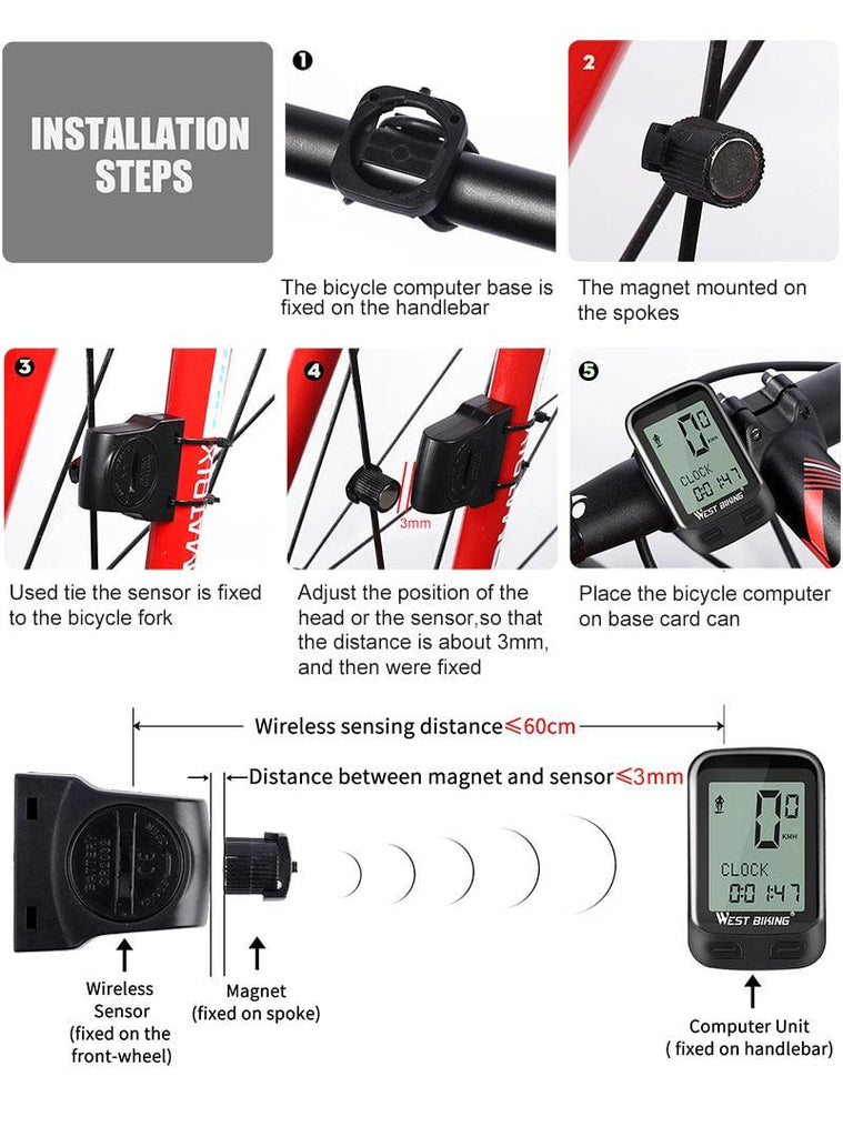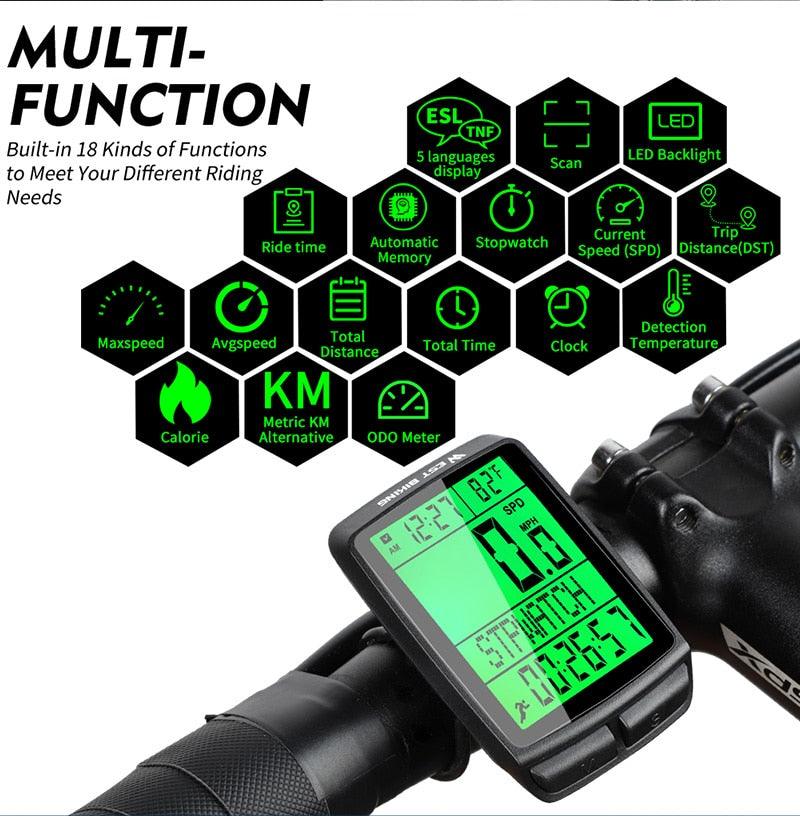 - MULTI FUNCTIONS: Built-in 18 functions, speedometer for bike works well to measure speed,distance,riding time calorie counter and etc which what any serious bicyclist or fitness fanatic needs.Small size ,lightweight and wireless design make the bicycle computer wireless suitable for most types of bicycles(may not suit for some type with large spokes)