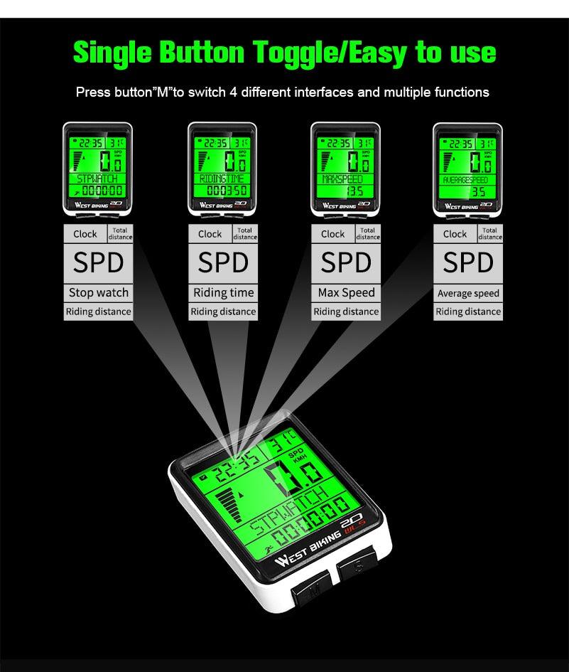 - AUTO SLEEP AND WAKE UP: After no signal inputs of 300 seconds, the screen of bike speedometer wireless will go into a standby sleep mode with LCD displays. When you shake the bike computer or any signal is inputted or any button is pressed,this cycle computer will automatically wake up