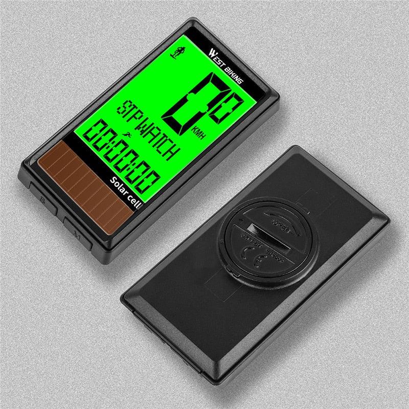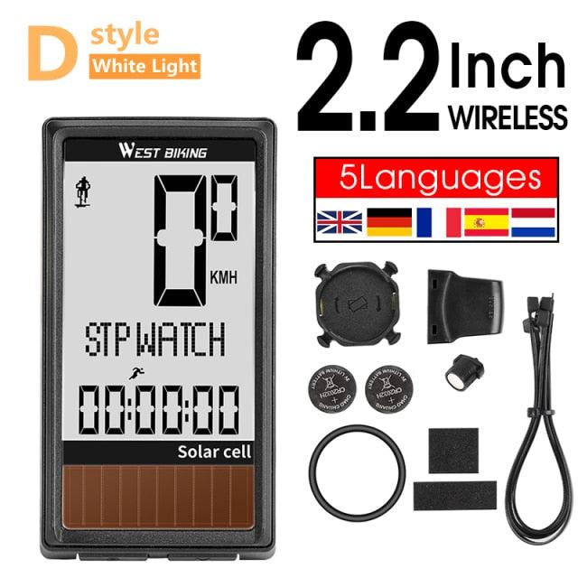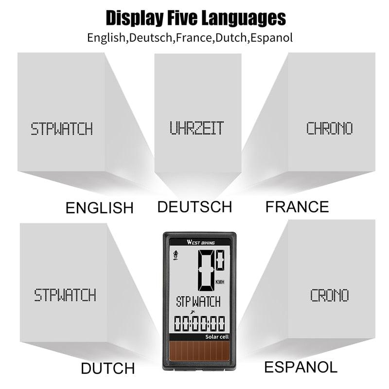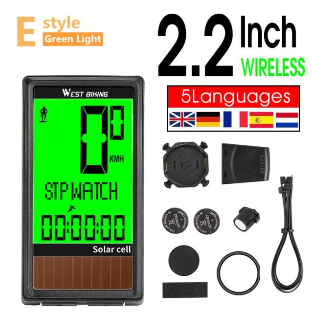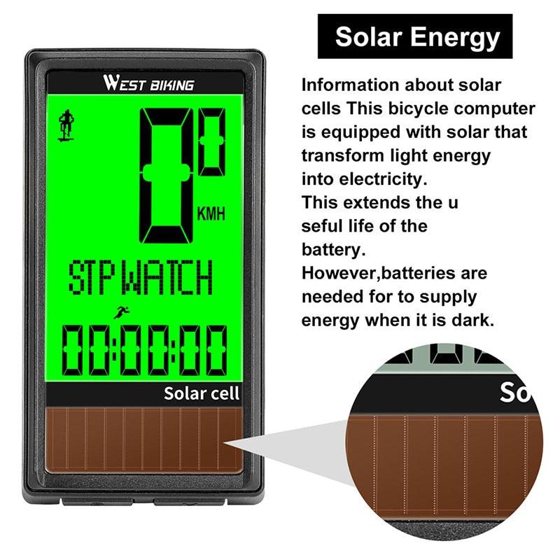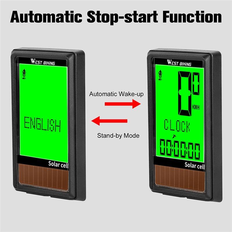 LED Waterproof Bicycle Computer Wireless 5 Language Cycling Bike Odometer Stopwatch Speedometer With Solar Energy Bicycle Odometer Wireless Waterproof Cycling Computer LCD Backlight Display