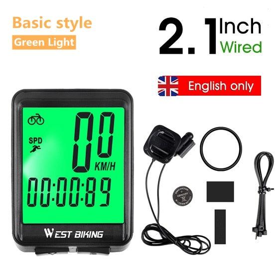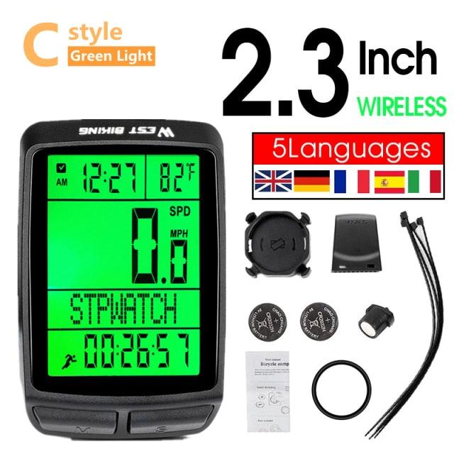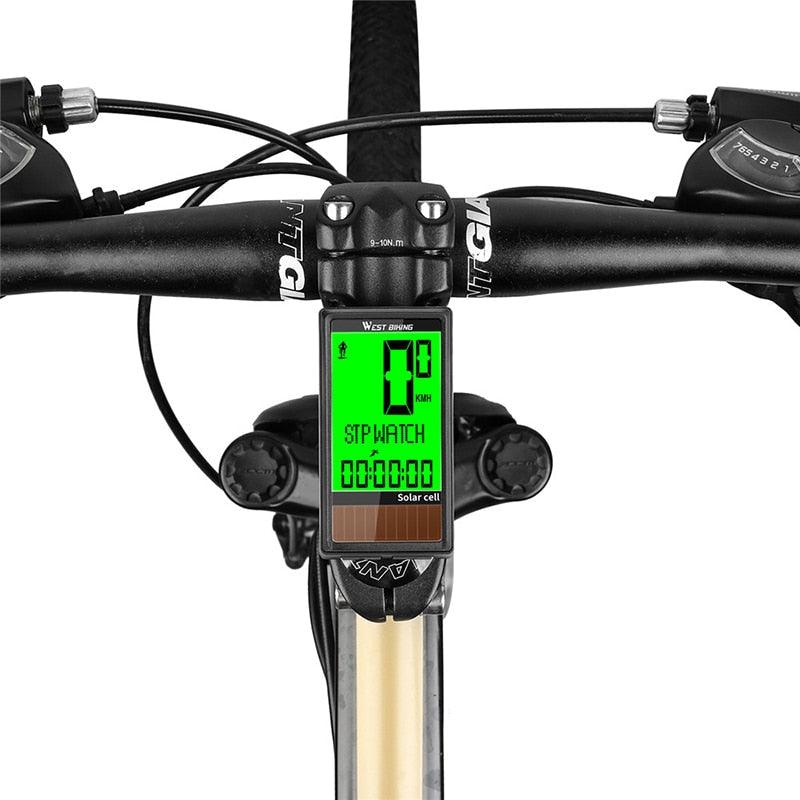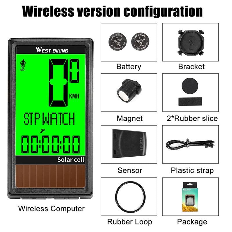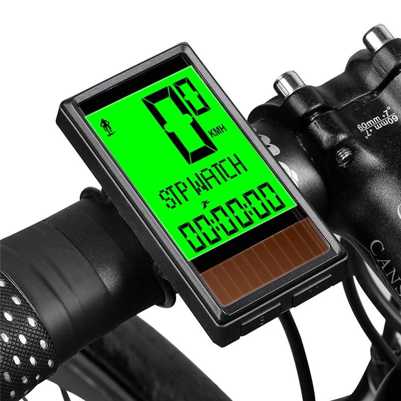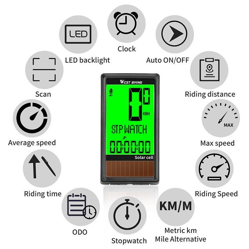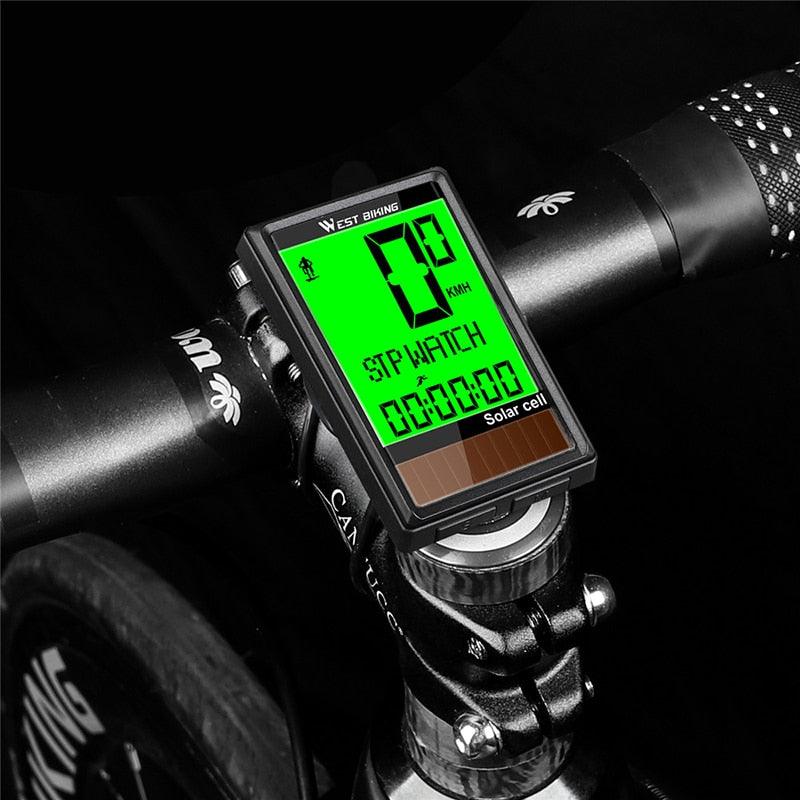 LED Waterproof Bicycle Computer Wireless 5 Language Cycling Bike Odometer Stopwatch Speedometer With Solar Energy Bicycle Odometer Wireless Waterproof Cycling Computer LCD Backlight Display