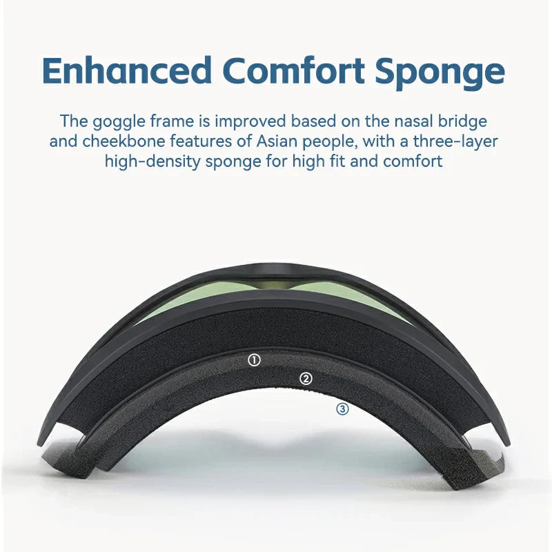 • Double-Layer Anti-Fog Protection: Equipped with inner lenses treated for anti-fog, ensuring clear vision during extended use in snowy conditions.