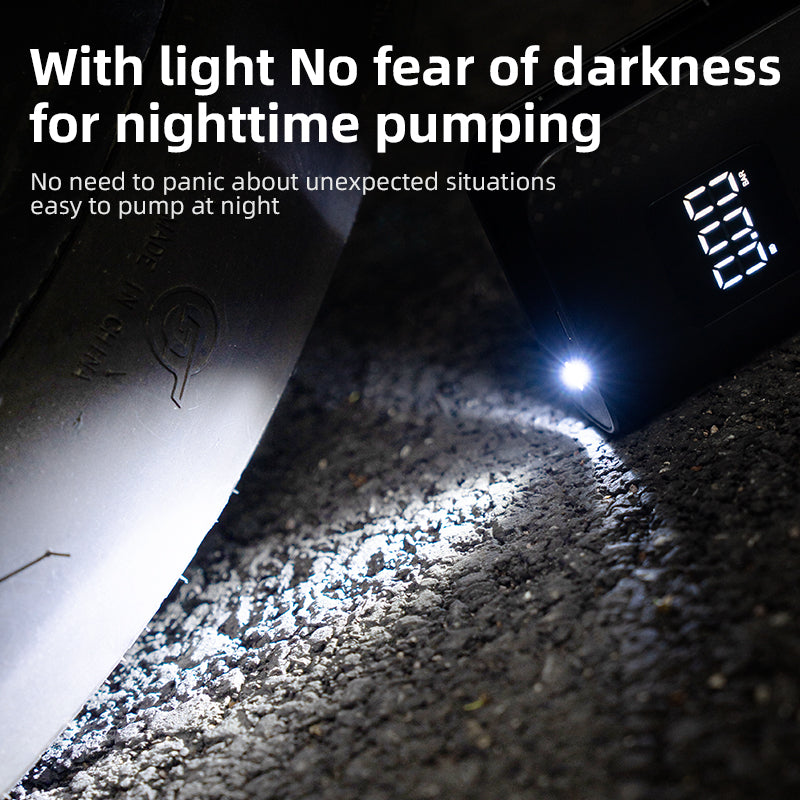 Built-In LED Light: Bright LED light ensures easy use and visibility during nighttime inflation.