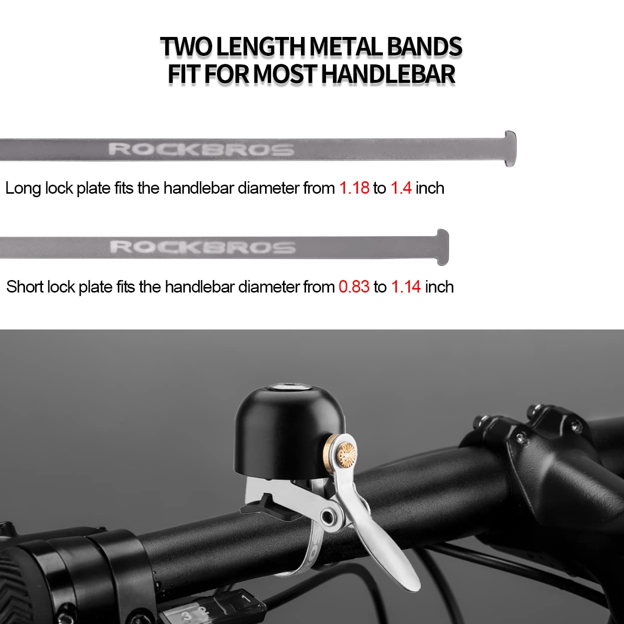 • Loud Sound: ROCKBROS bike bell has a sharp and clear ding. Small bell has loud sound to warn the walkers and passing vehicles that you're coming up behind them, enough to get attention. Enjoy the sweet classic bike bell on the way.