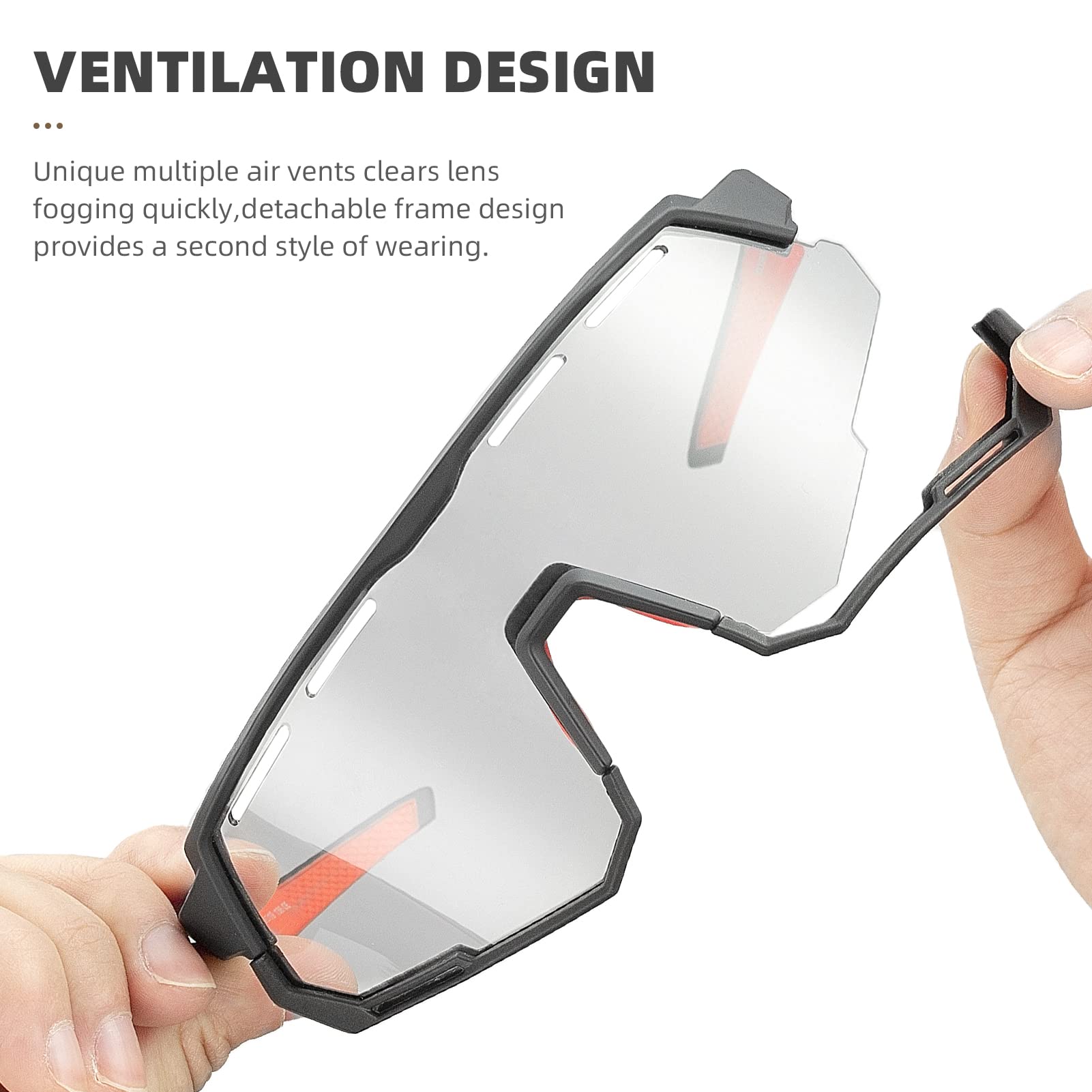 - BUY ONE GET TWO: Our mtb glasses come with two interchangeable lens- one is POLARIZED LENS, the other is PHOTOCHROMIC LENS. A pair of glasses can be used in different occasions, never need to buy extra glasses.