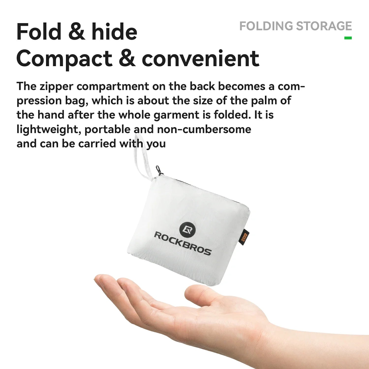 - Palm-sized when packed: Easily stashes in a jersey pocket or hangs from your backpack strap.