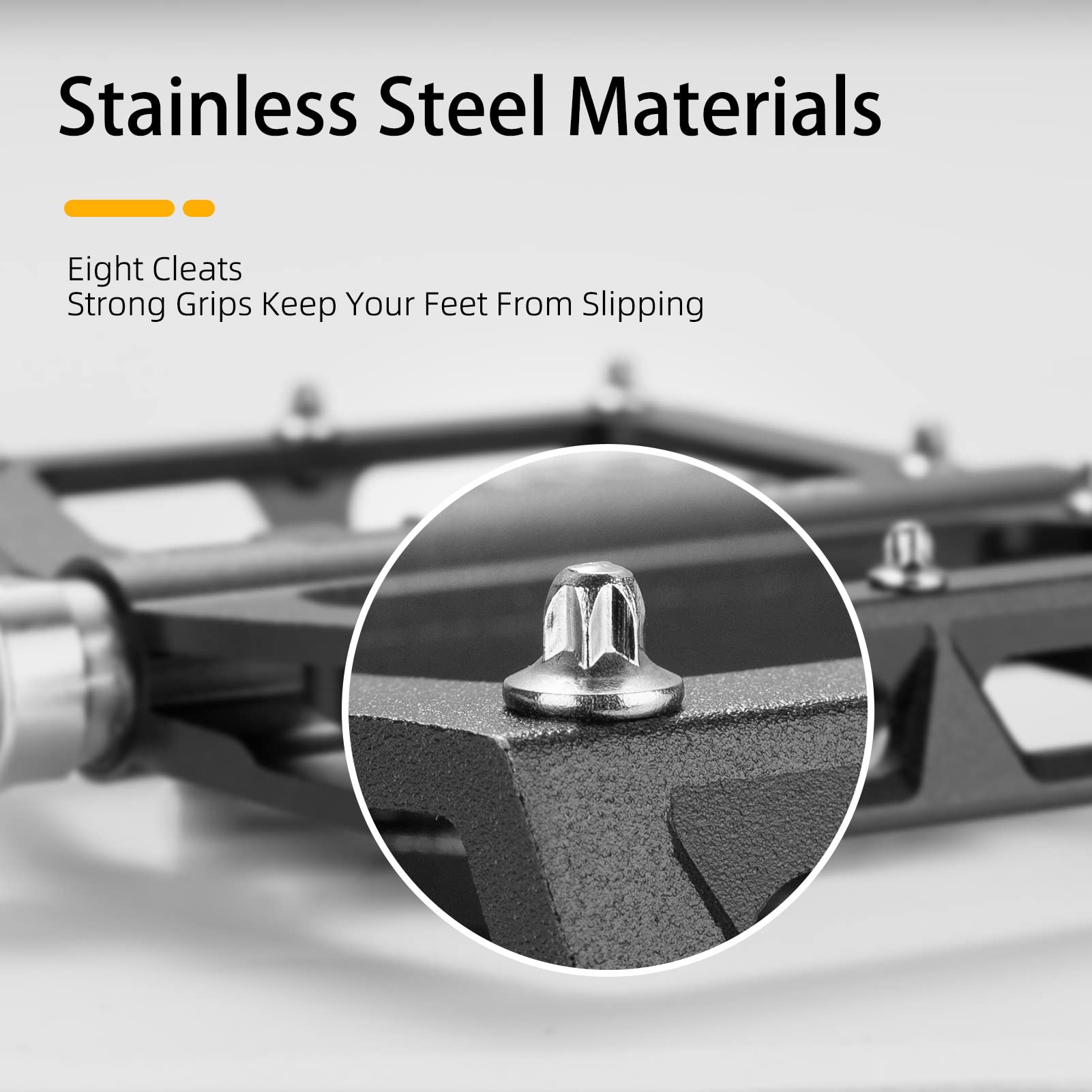 - ★WIDE PLATFORM & SUPER GRIPPY: The aluminum body is 101*92mm relatively large. It ensures more riding stability.Besides, Stainless steel anti-skids spikes on one side of the mountain bike pedals provide the good grip for you.We also have divided the pedals on the left and right with signs, L for left; R for right.