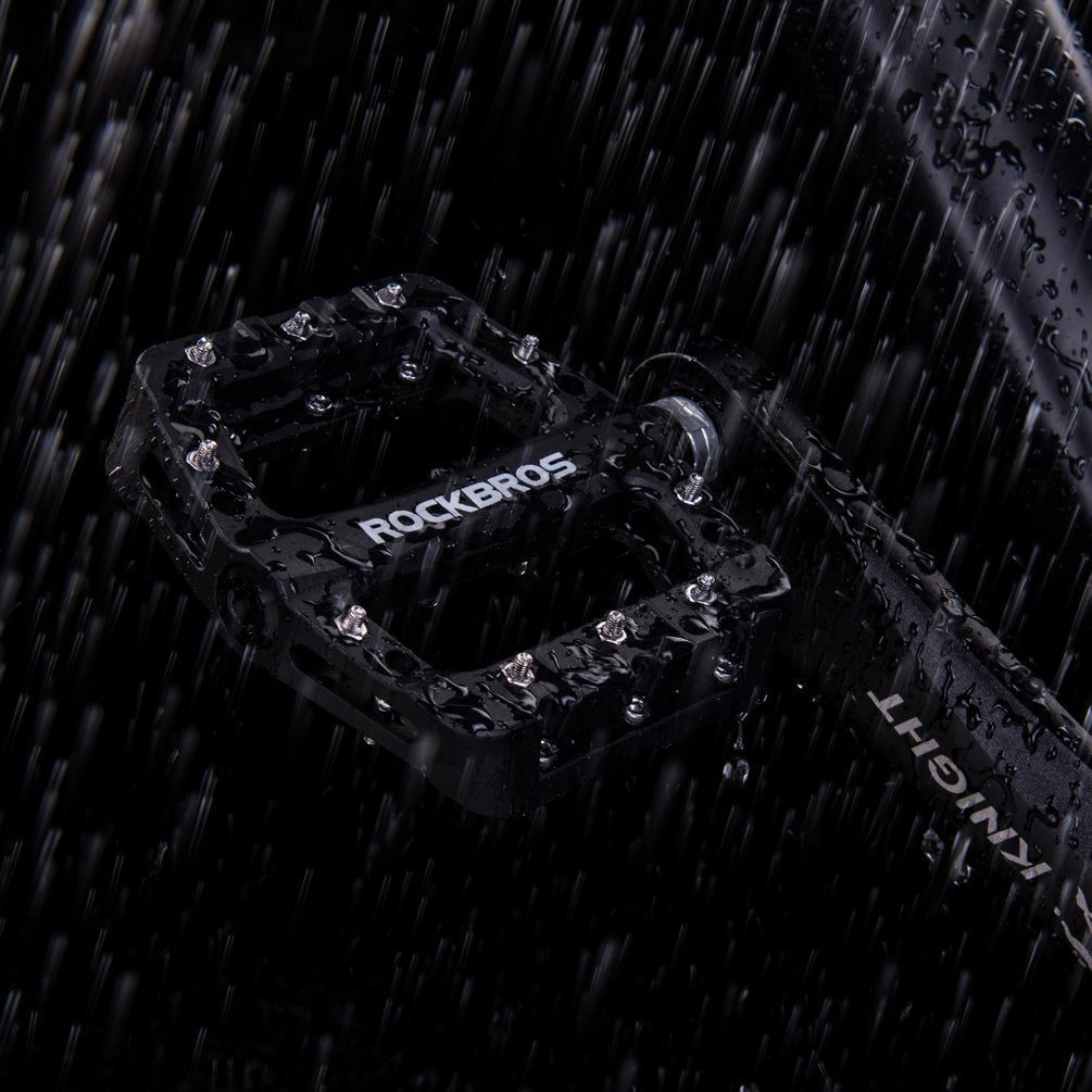 - GREAT GRIPS: Anti-skid nails on each side provide more security on the pedals and hold your feet in place. Even if they are covered with a thick layer of mud after a muddy ride, you don't worry about your feet slipping off the pedals