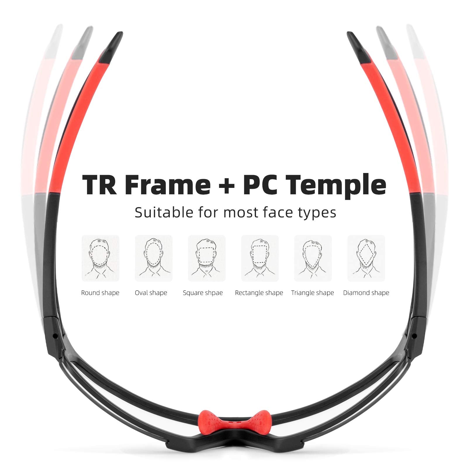 - SOFT & COMFORTABLE: This sunglasses designed with adjustable nose pad to fit your nose better. Soft rubber temple make your feel comfortable while cycling. The glasses frame is also equipped with two air holes to prevent the glasses from fogging.