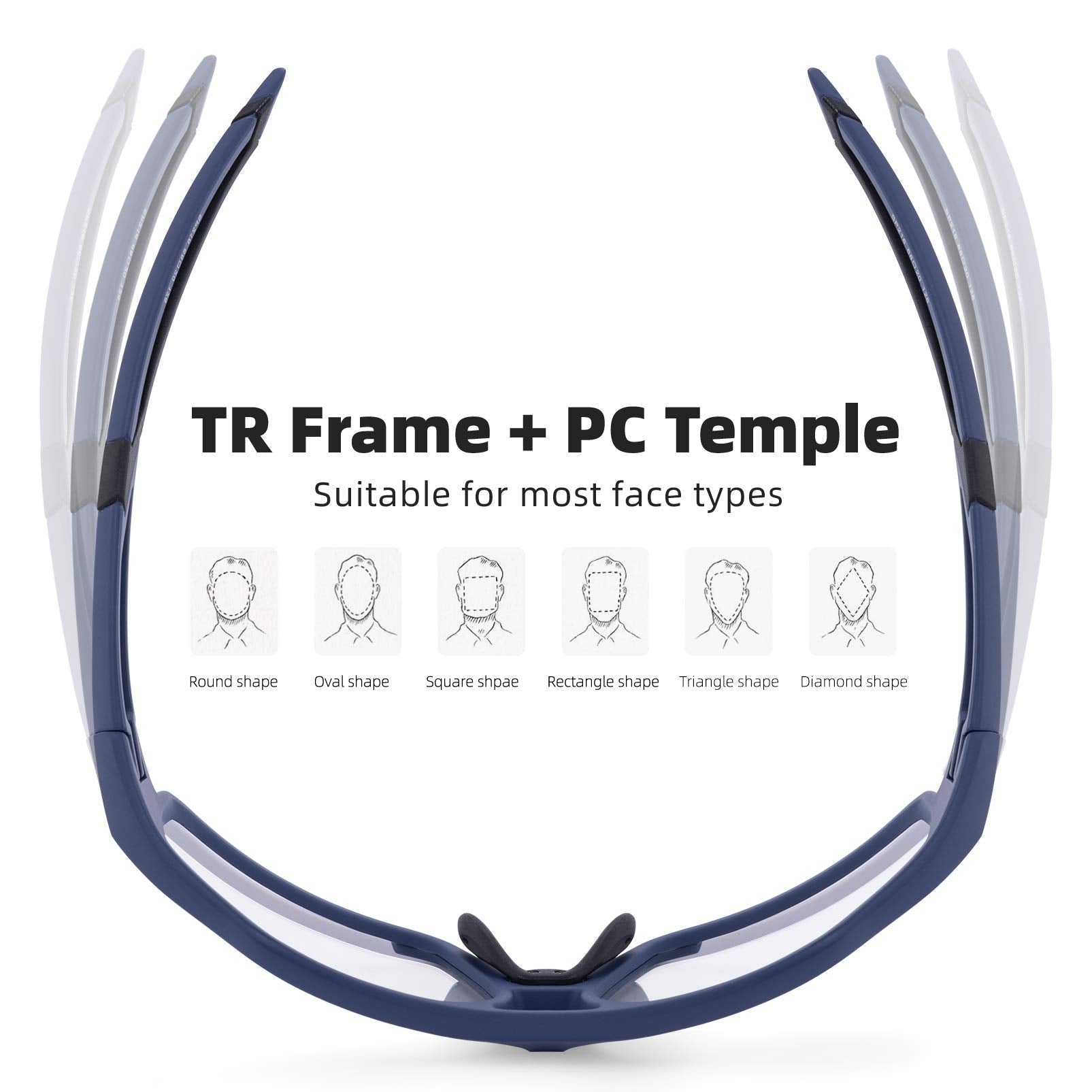 - FASHION FRAME: Stylish glasses make you cool in the crowd, the curved frame design could fits the face better and fits most face shapes. Suitable for cycling, driving, running, fishing, racing and climbing,trekking or other outdoor activities.