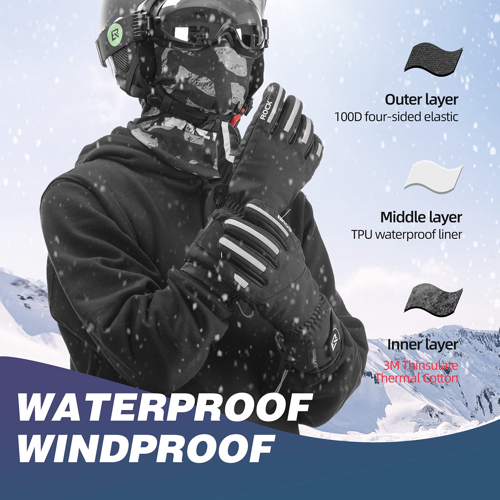 ROCKBROS Winter Ski Gloves Waterproof 3M Thinsulate Touch Screen Thermal Gloves for Men Women