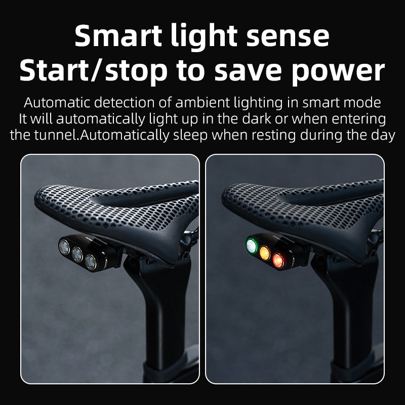 • Smart Brake Sensing: Built-in vibration sensor activates all three lights—red, yellow, and green—during braking for enhanced visibility and safety.